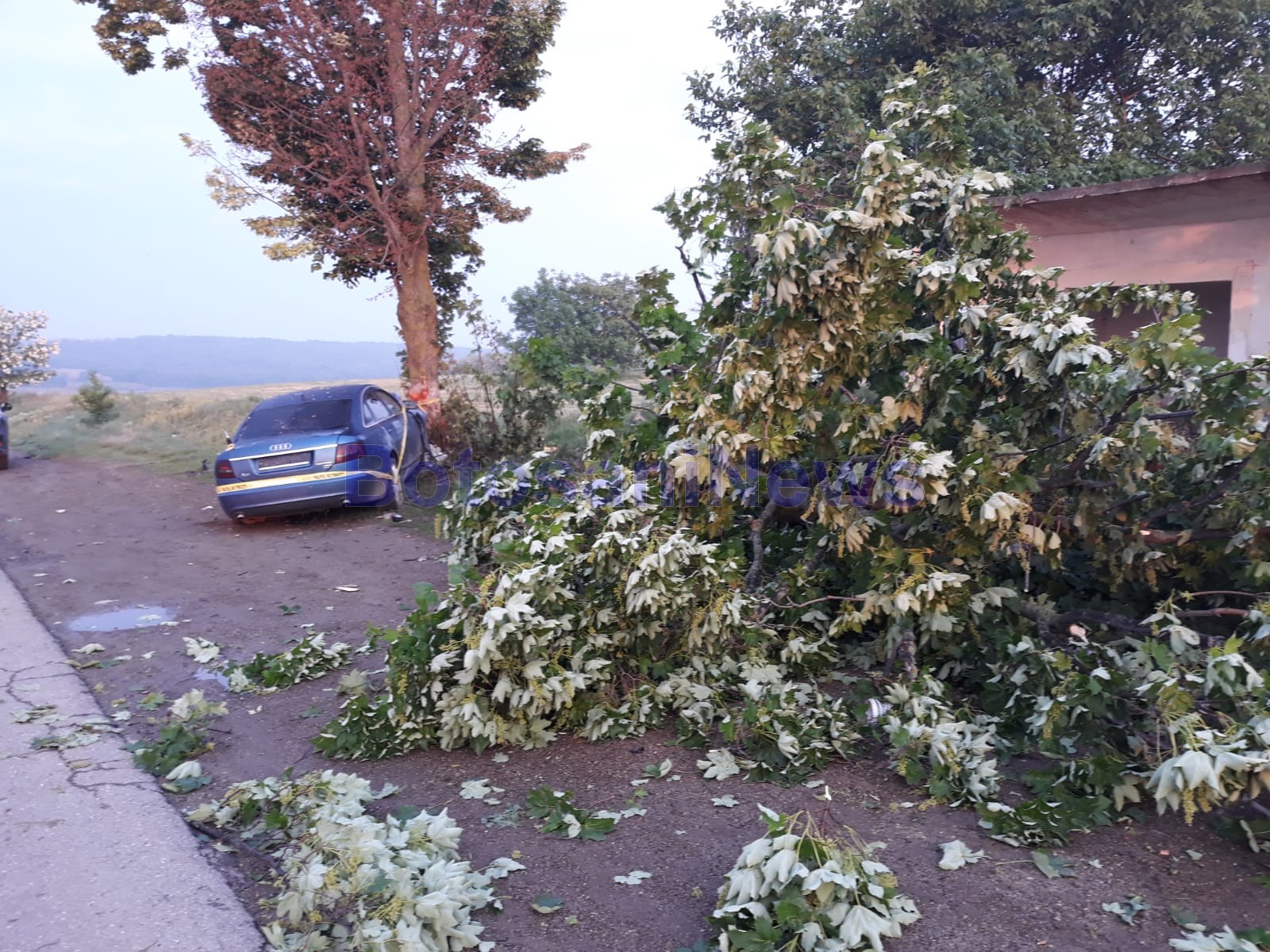Un bărbat care conducea un autoturism Audi a pierdut controlul asupra volanului, a ieşit de pe carosabil, a lovit un copac pe care l-a rupt, după care s-a oprit în alt arbore de pe partea dreaptă a drumului.