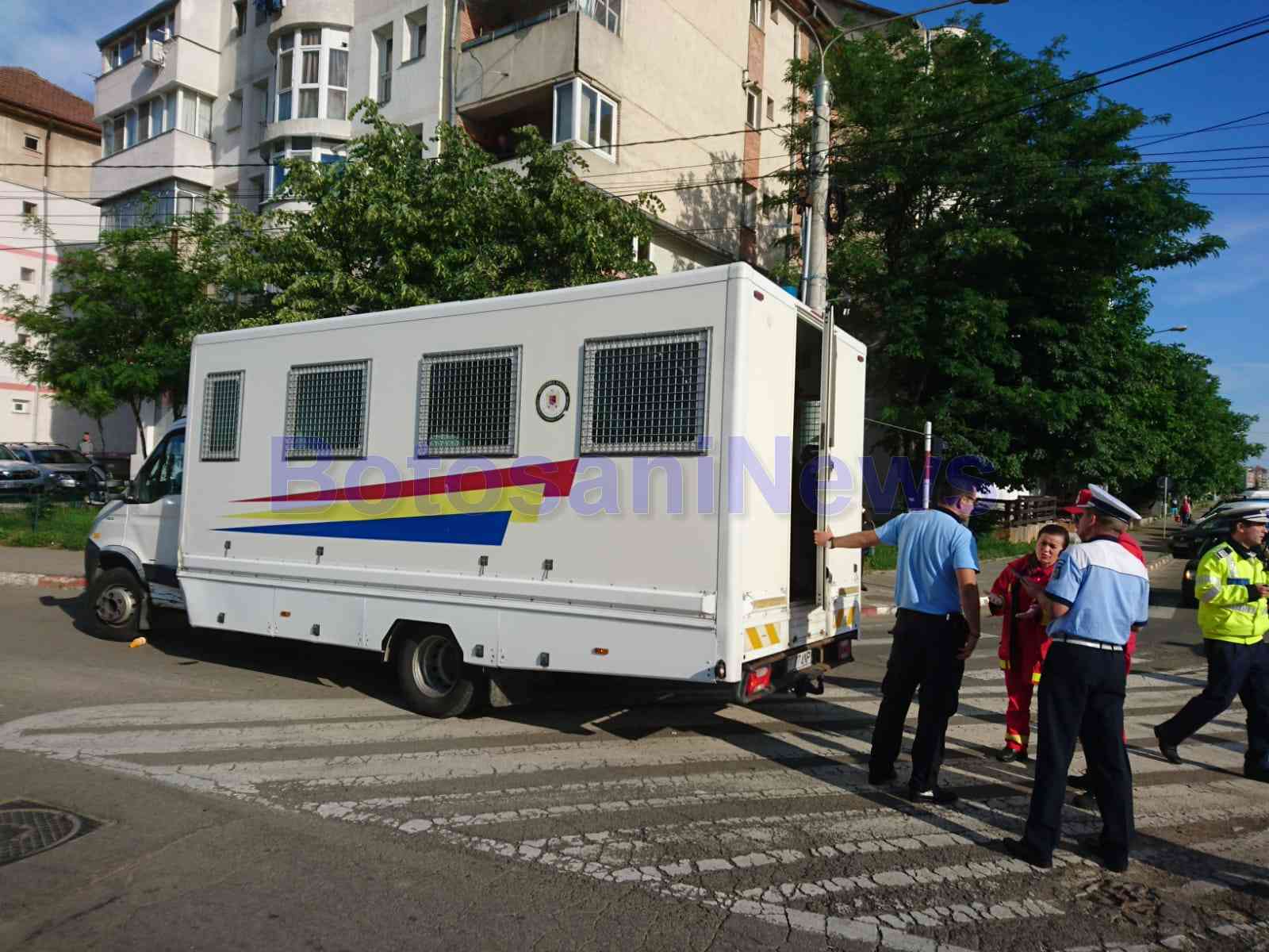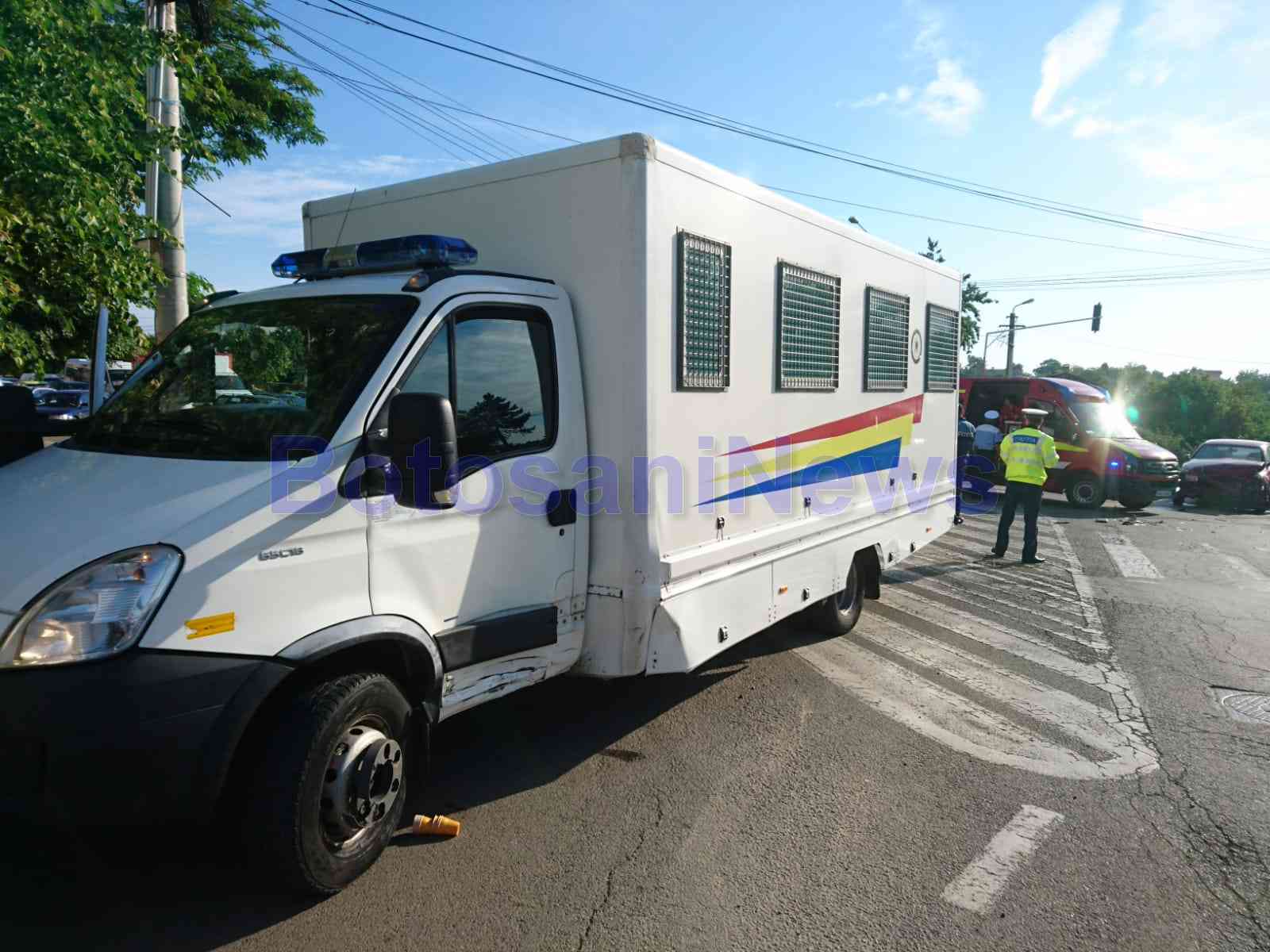 O mașină cu deținuți a fost implicată într-un accident rutier, marți dimineață, într-o intersecție din municipiul Botoșani.