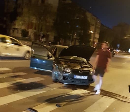 Două autoturisme, un Volkwagen și un Audi, s-au ciocnit, iar una dintre ele a fost proiectată pe trotuar, fără a face victime nici în rândul pasagerilor din mașini, nici în rândul pietonilor care ar fi putut să se afle pe trotuar. În schimb, autoturismul care a urcat pe trotuar a distrus un semafor electric.