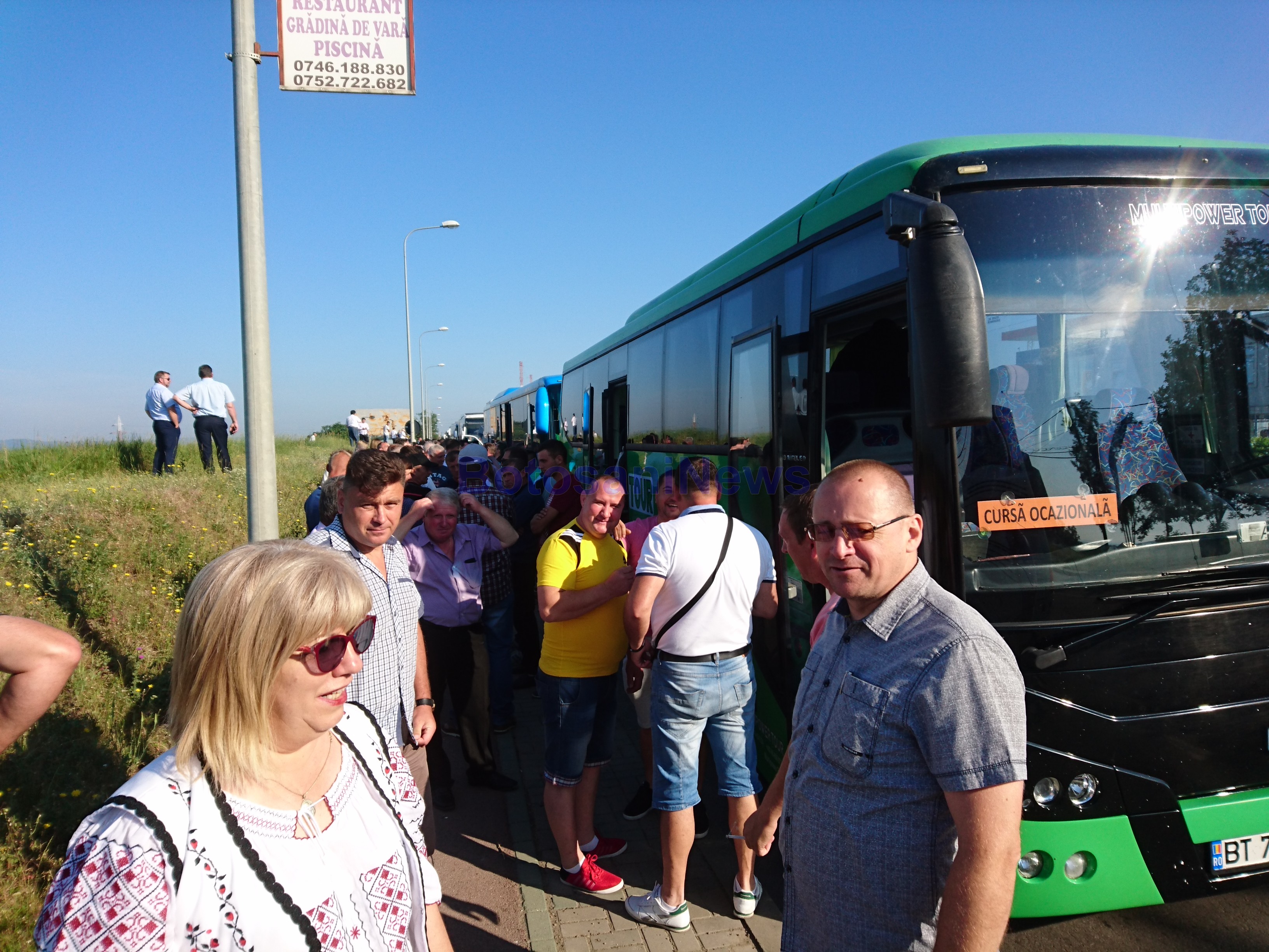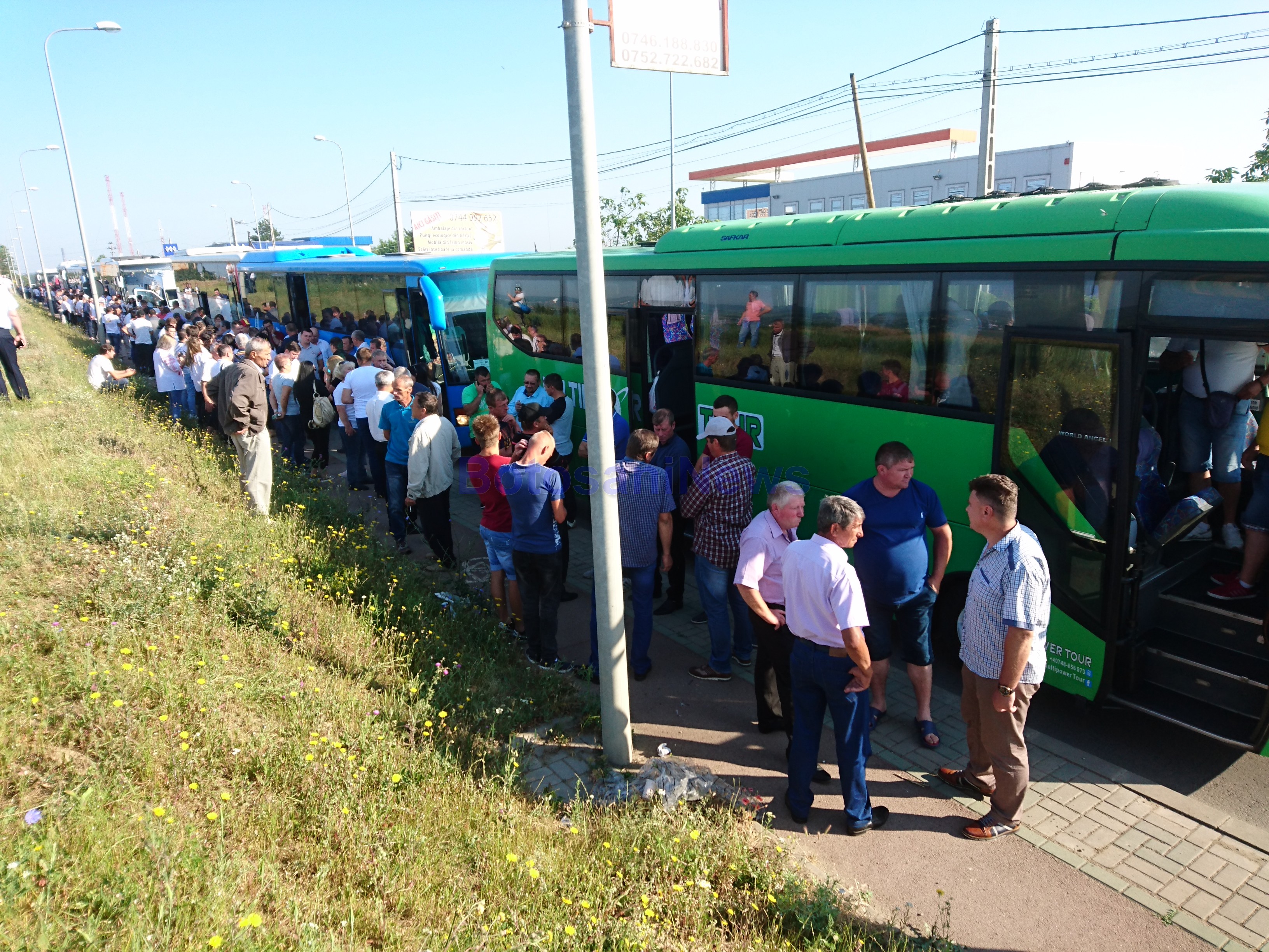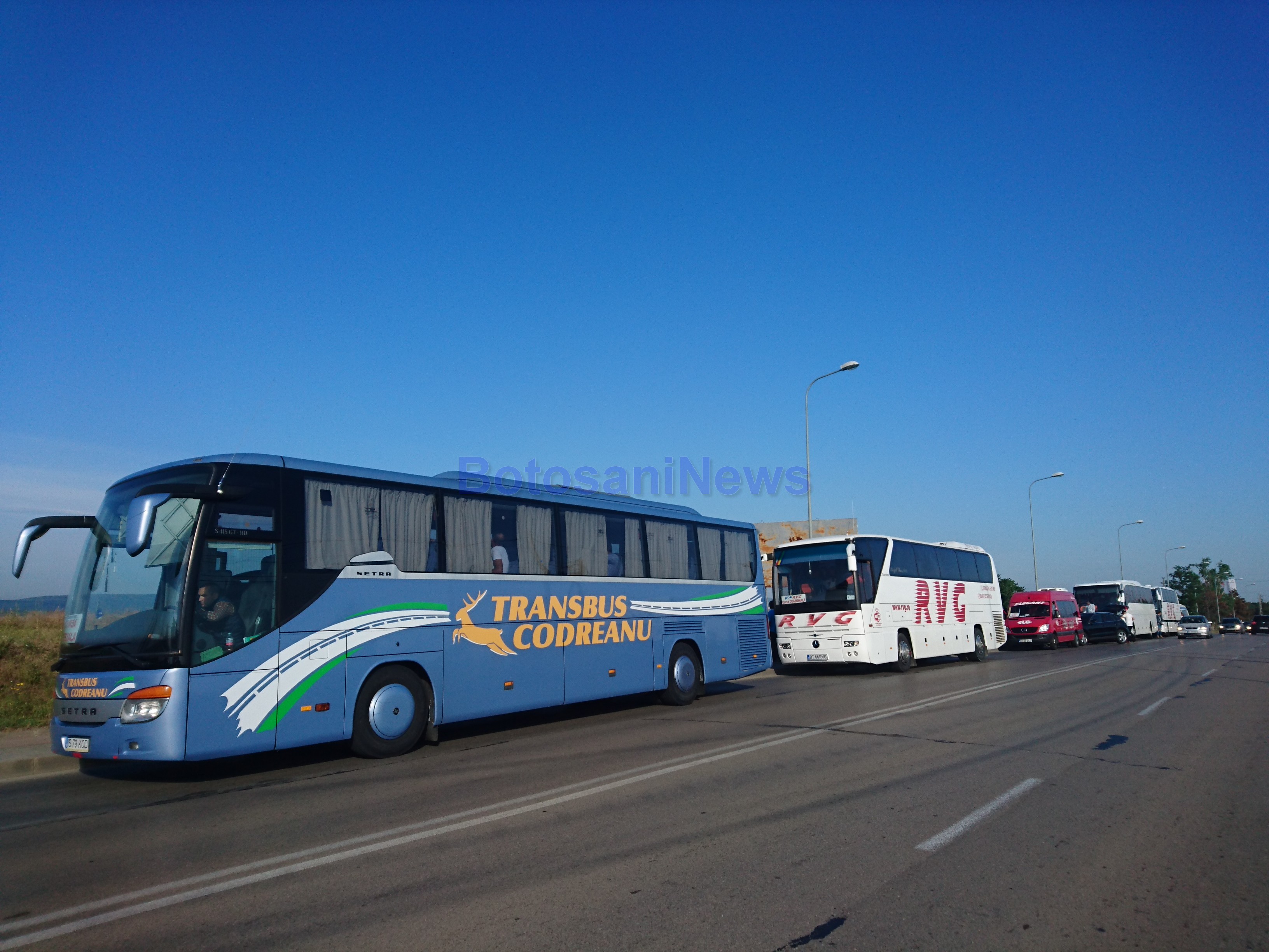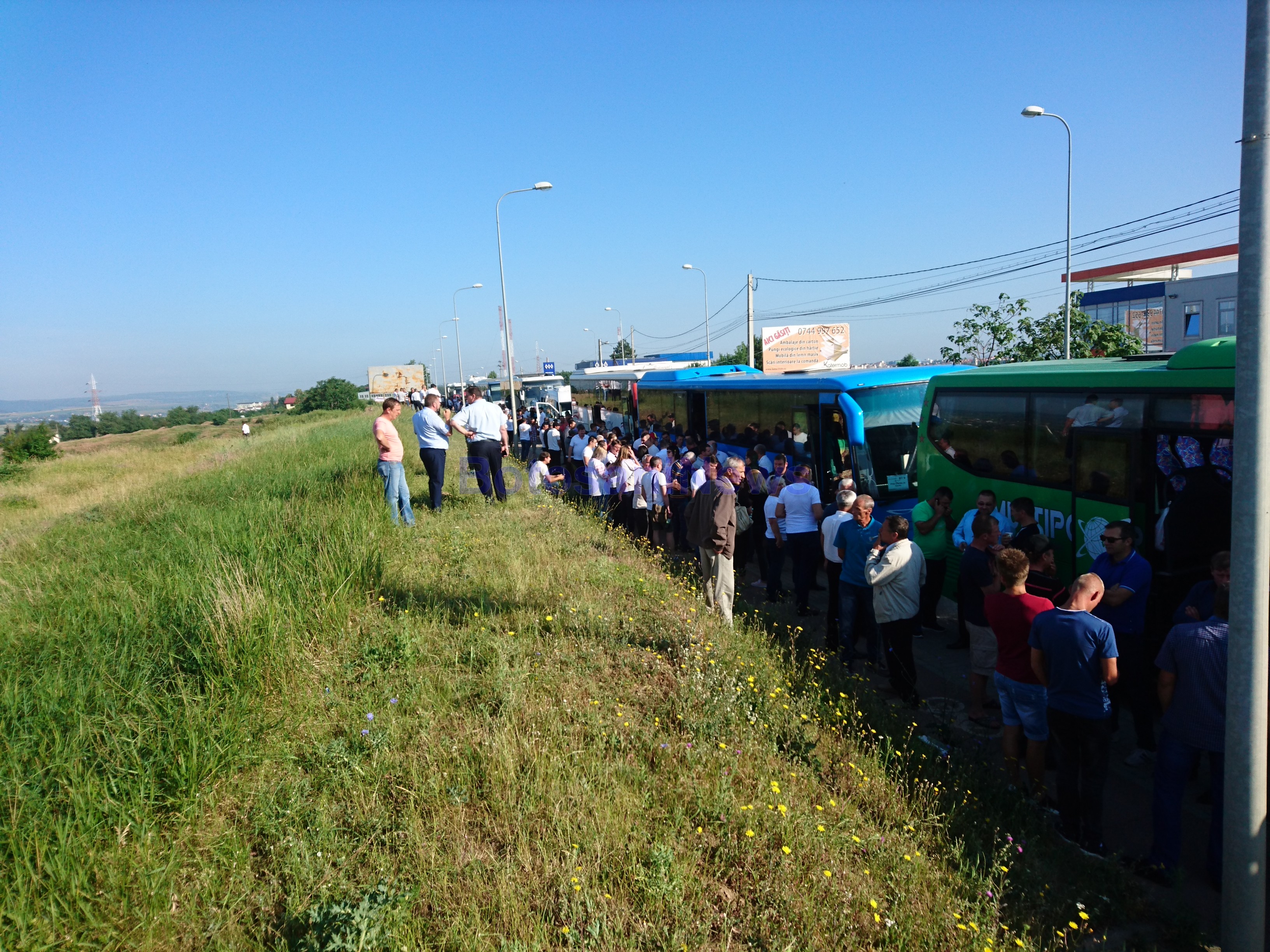 18 autocare şi şase microbuze de la diverse societăţi de transport, printre care Microbuzul SRL, Apetrans, Elegant Glob sau RVG, au plecat în coloană de la benzinăria Berişteanu din zona Lebăda.