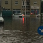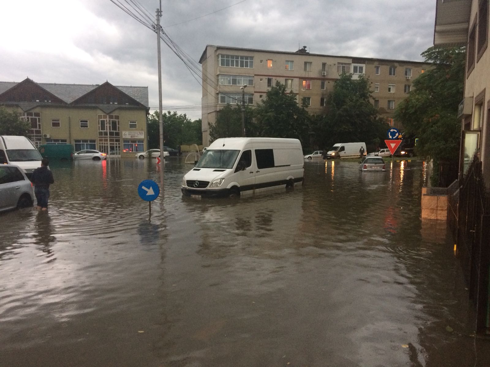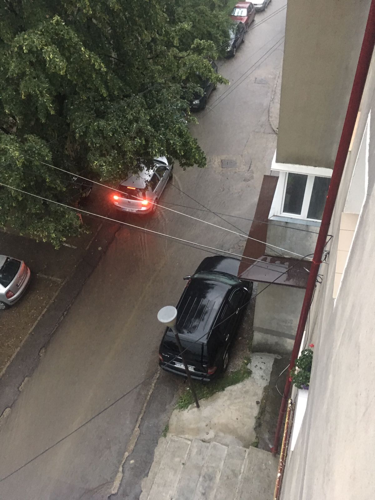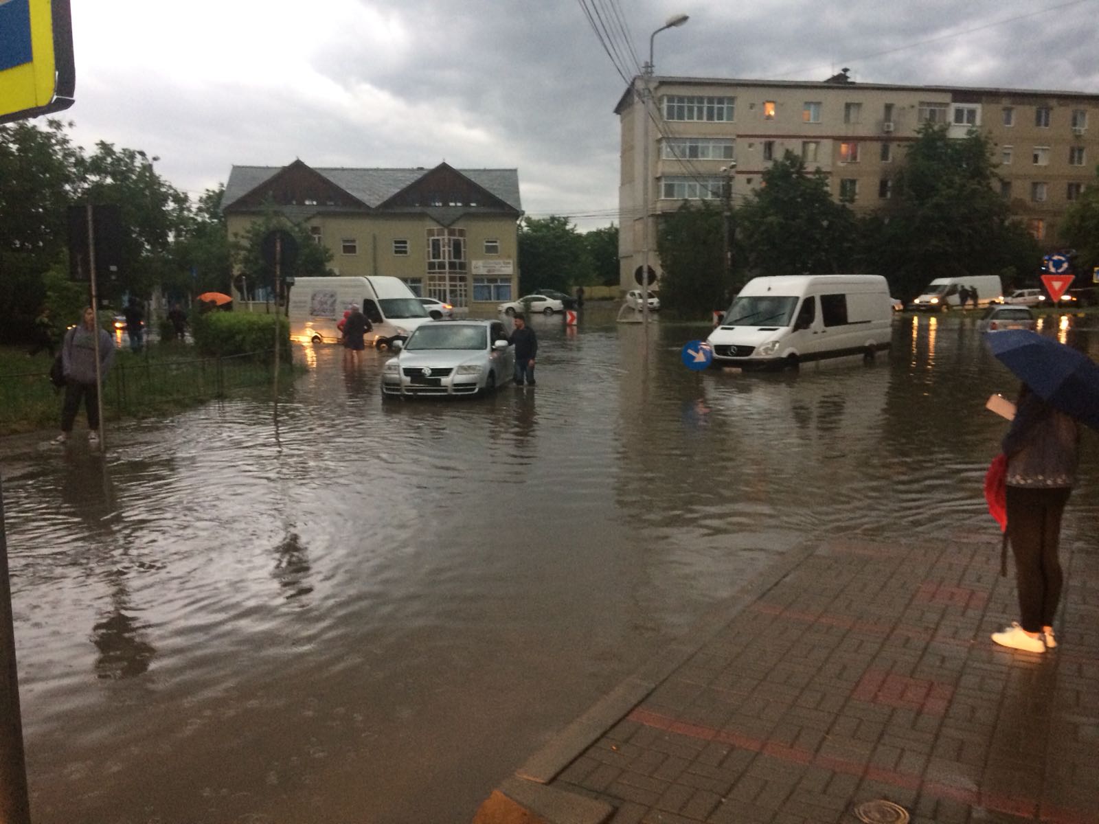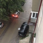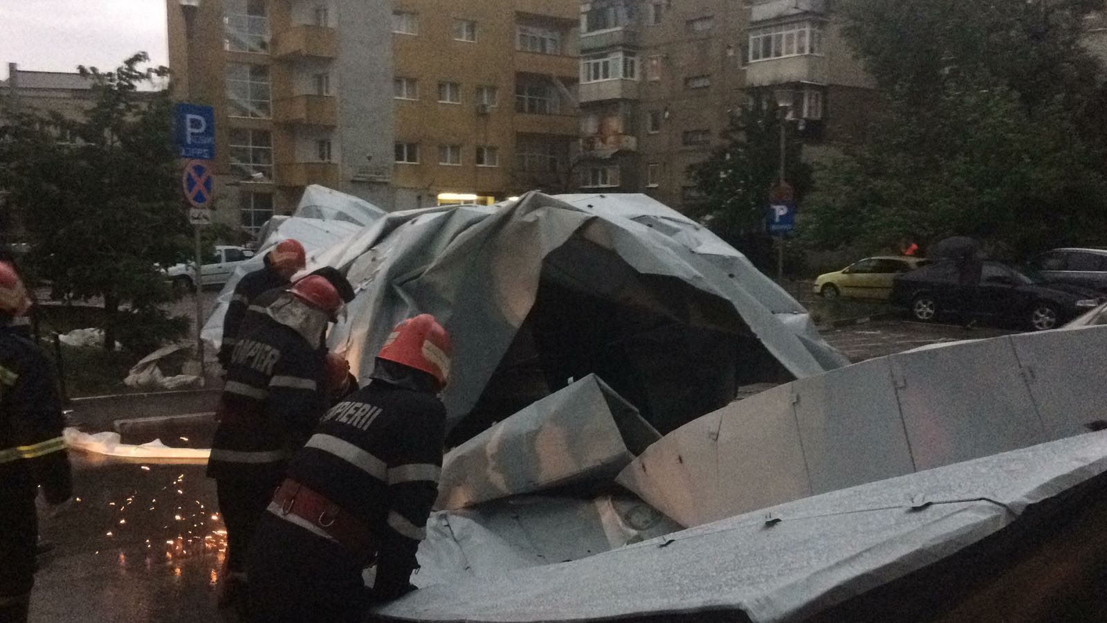 Strada Împărat Traian cu Octav Onicescu a fost inundată. Șarpanta sediului Casei de Pensii a fost smulsă de vijelii, iar trei mașini au fost avariate.