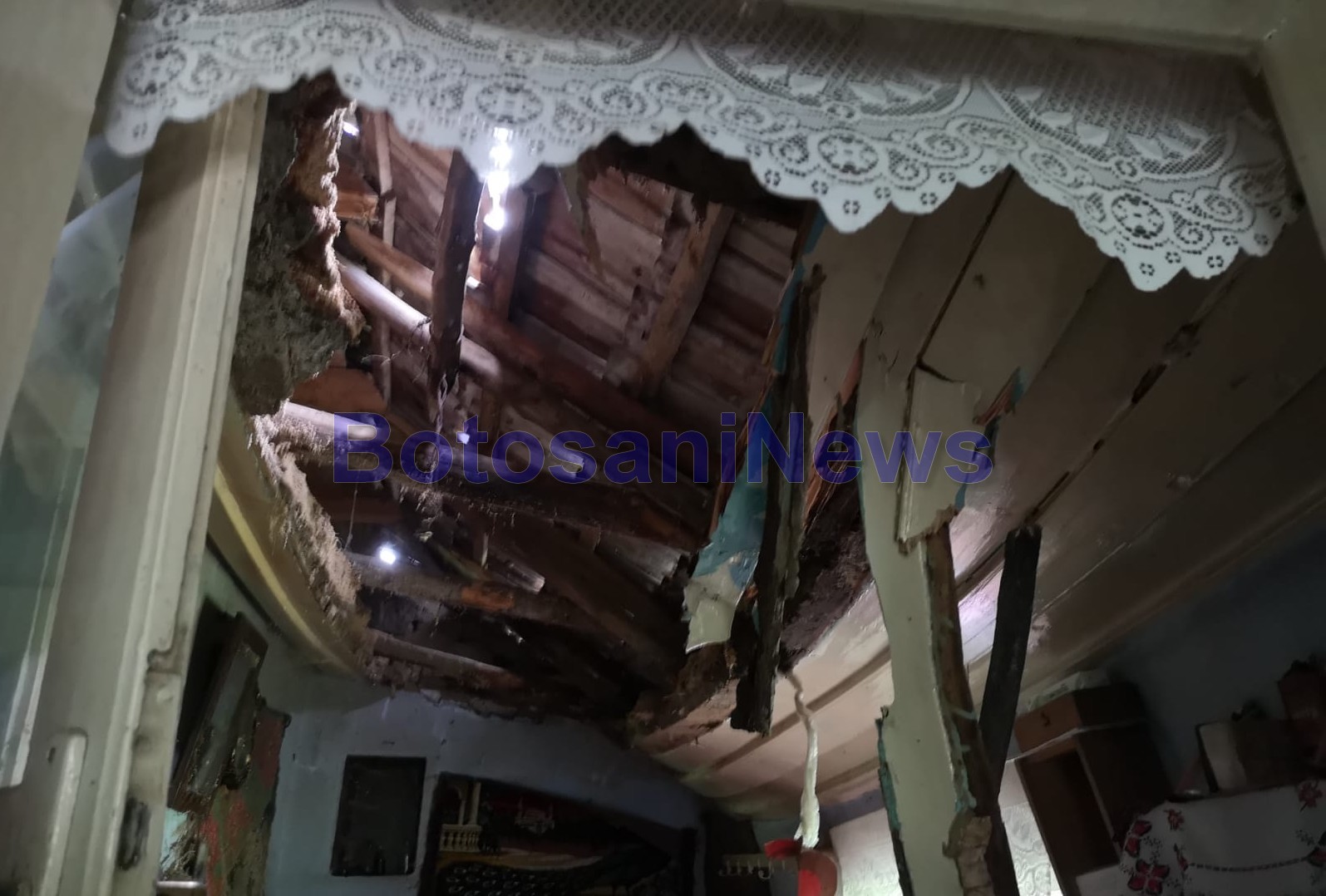 Din cauza ploilor abundende, tavanul a cedat și s-a prăbușit peste ea.