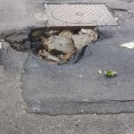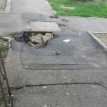 Este vorba despre Aleea Parcului, nr.10, sc C, unde în fața blocului s-au format trei gropi, în apropierea canalizării, una fiind de dimensiuni mai mari, iar locatarii au văzut cum ies șobolani din ea.