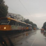 Tramvaiele au fost blocate, luni seară, în municipiul Botoșani, în zona Praktiker, din cauza unei inundații. Ca urmare a faptului că rețeaua de canalizare nu face față, tramvaiele nu pot circula deoarece echipamentele electrice se află la 30-40 centimetri de calea de rulare.