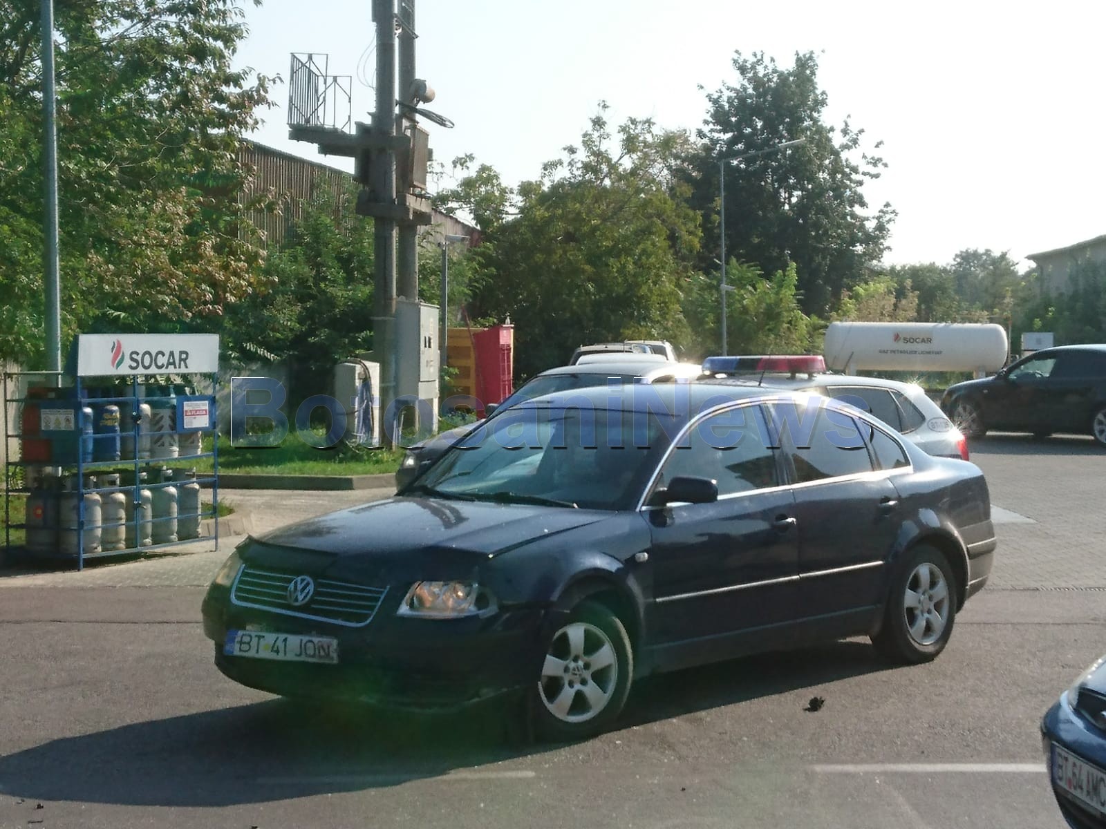 Șoferul autoturismului Opel a ieșit din Socar și a virat stânga fără să se asigure, fiind izbit de un VW Passat care circula regulamentar.