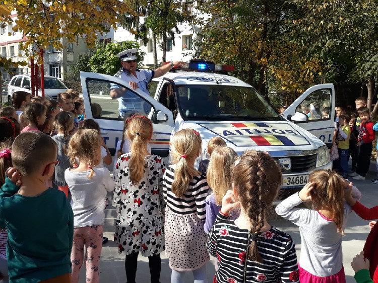Reprezentanţii Poliției Rutiere, prezenţi printre cei mici, i-au învăţat într-un mod interactiv pe aceştia cum să devină viitori participanţi responsabili la traficul rutier, oferindu-le în acest sens pliante, postere şi reviste în care sunt explicate, prin diverse jocuri, regulile pe care micii pietoni trebuie să le respecte.