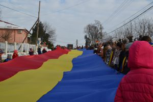 Un tricolor imens a fost purtat pe străzile dintr-o comună din Botoșani, sâmbătă, de Ziua Națională a României.