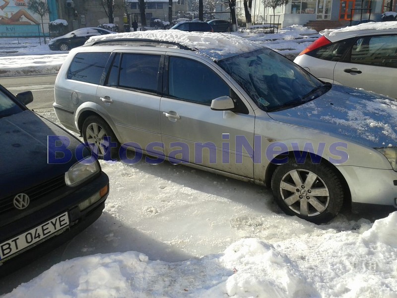 Cel puțin zece autoturisme parcate pe Calea Națională din municipiul Botoșani au rămas blocate în gheață, după o avarie la rețeaua de apă a societății comerciale Nova Apaserv SA.