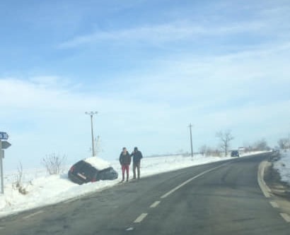 Conducătorul auto a pierdut controlul volanului într-o curbă, pe fondul neadaptării vitezei, mașina a derapat și s-a oprit în șanțul plin cu zăpadă.