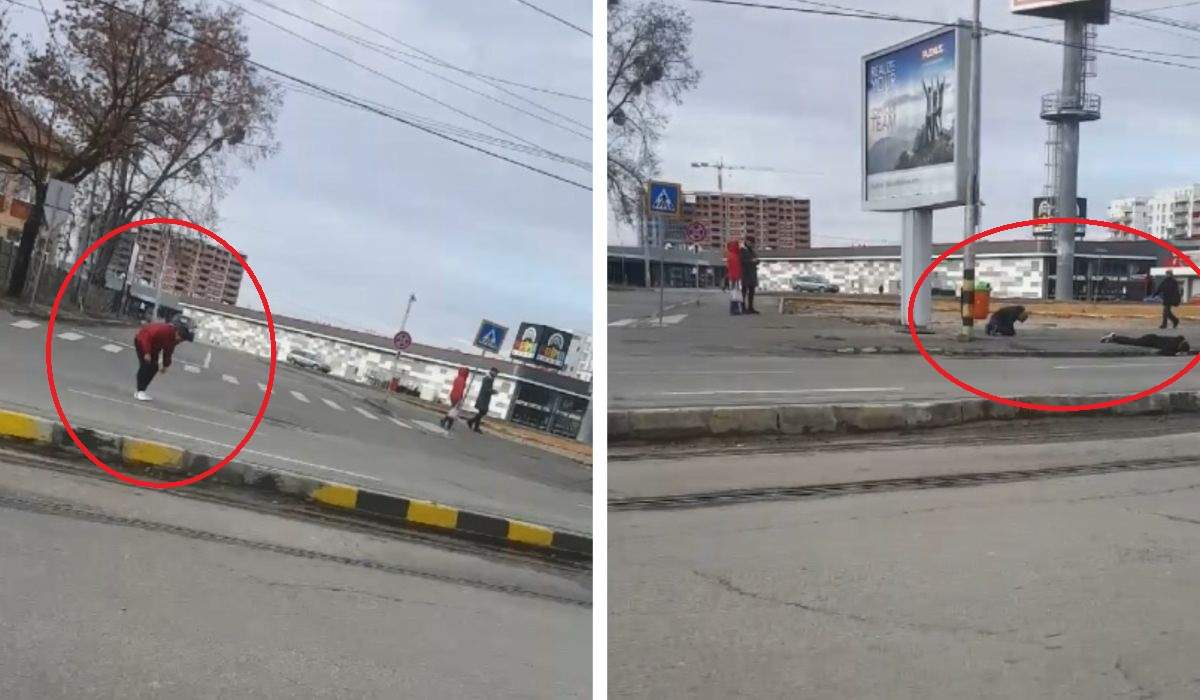 Pe imaginile postate pe o reţea de socializare se poate observa cum doi dintre ei erau prăbuşiţi pe trotuar, iar un altul se afla pe şosea, fiind ocolit de şoferi.