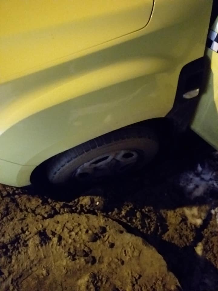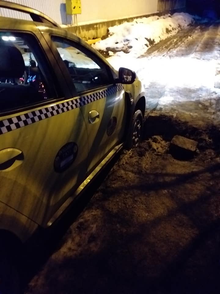 Un taximetrist a pățit asta marți dimineață, el rămânând cu roțile Daciei blocat în nămolul de pe stradă.