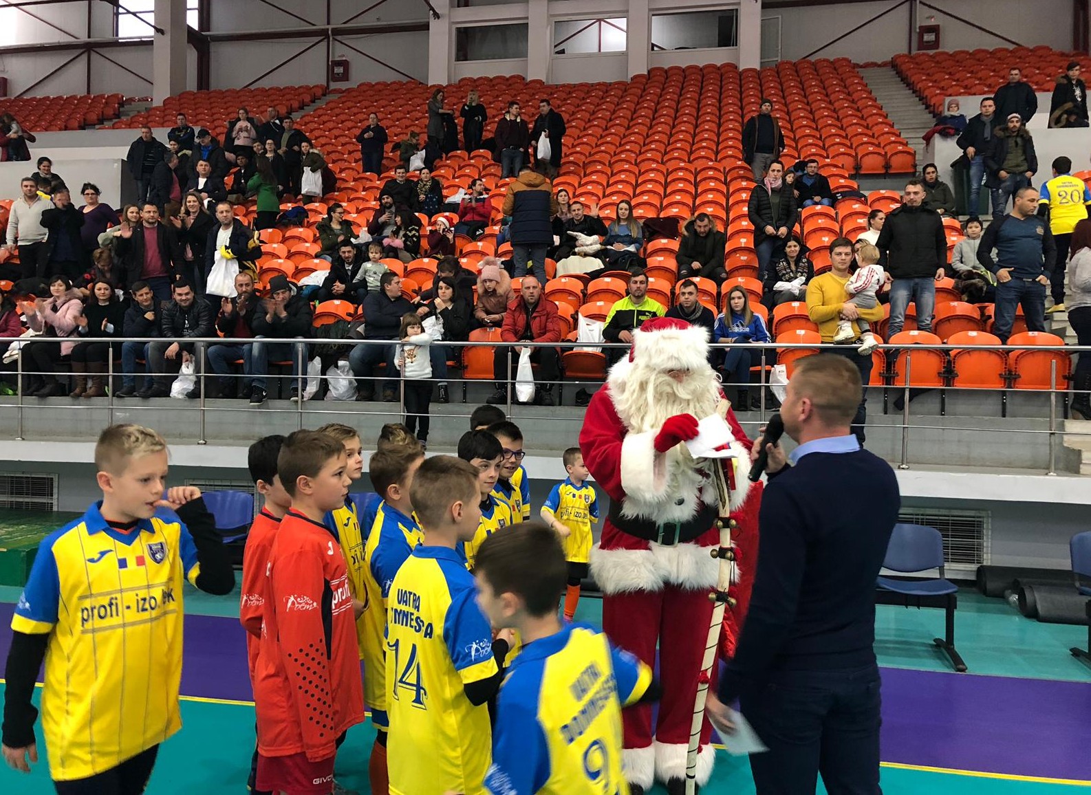 În prezența părinților, Moș Crăciun a înmânat micilor fotbaliști antrenați de Augustin Ivașcă daruri sub formă de dulciuri și fructe, însă cel mai important pentru ei a fost că au primit noul echipament al clubului.