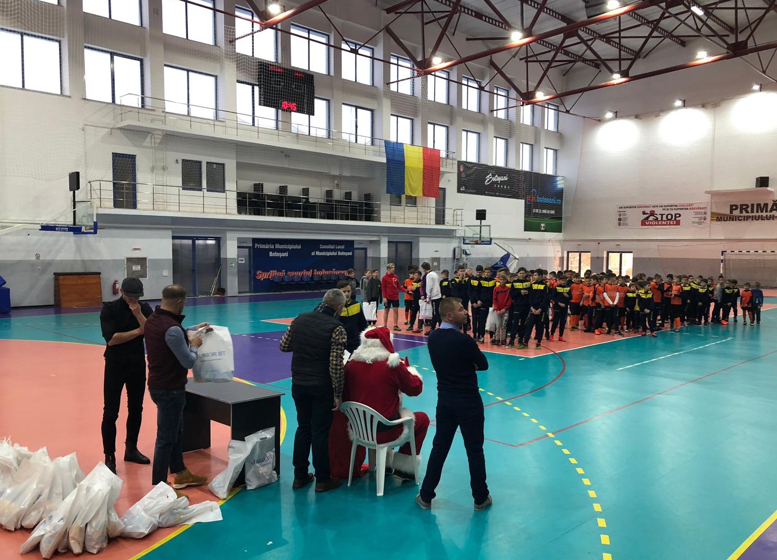 Peste 100 de copii legitimați la AFC Junior Botoșani au primit, duminică, cadouri de Moș Crăciun, în cadrul unei festivități care a avut loc la Sala Polivalentă Elisabeta Lipă.