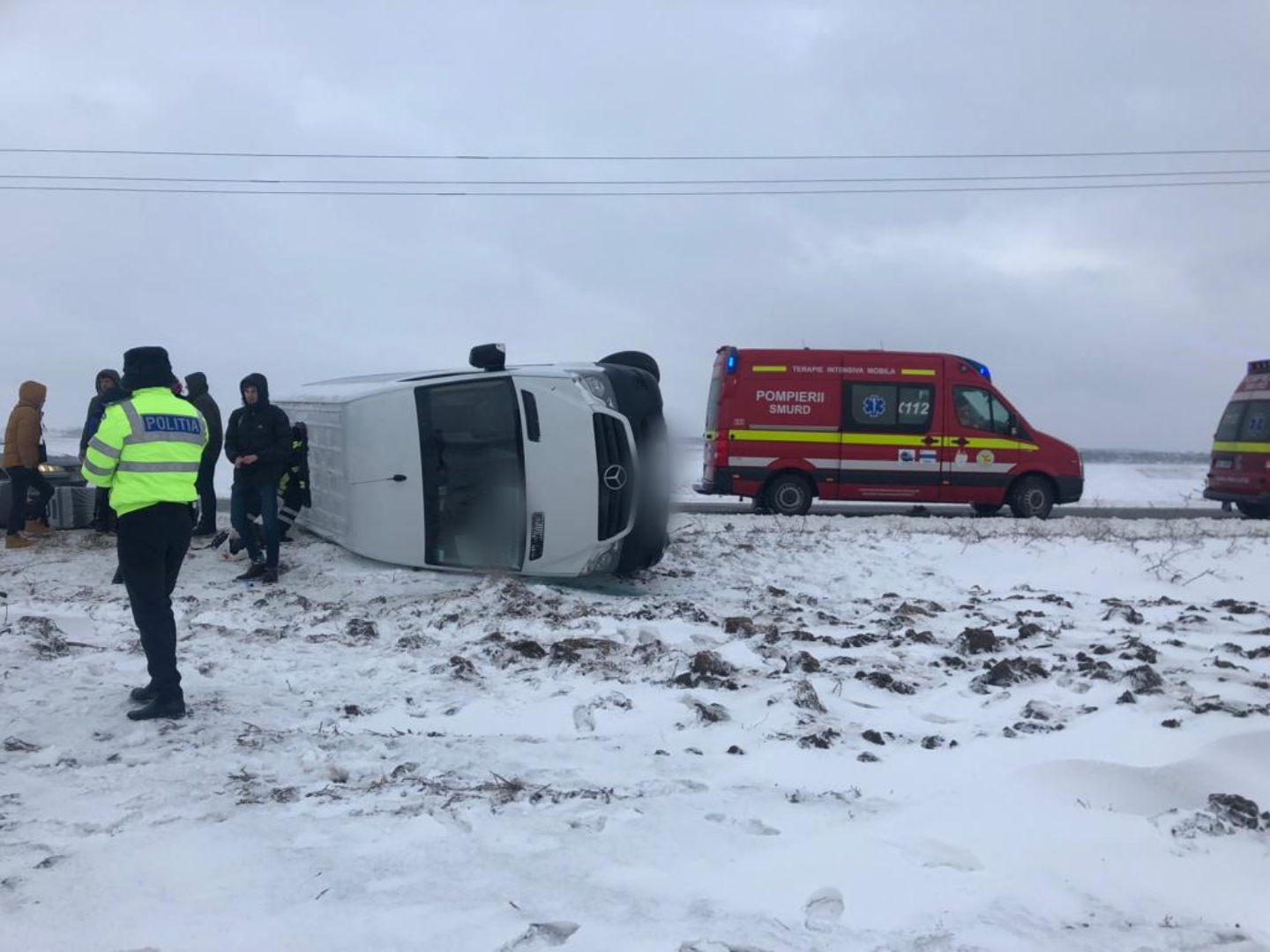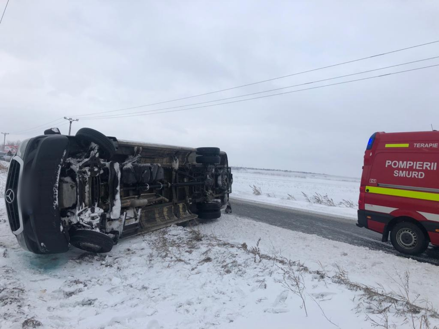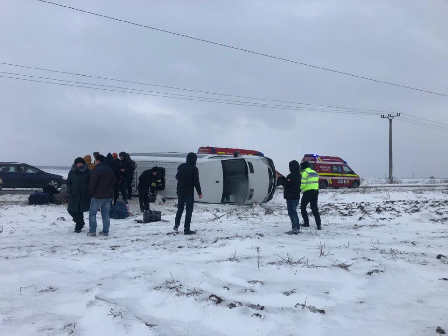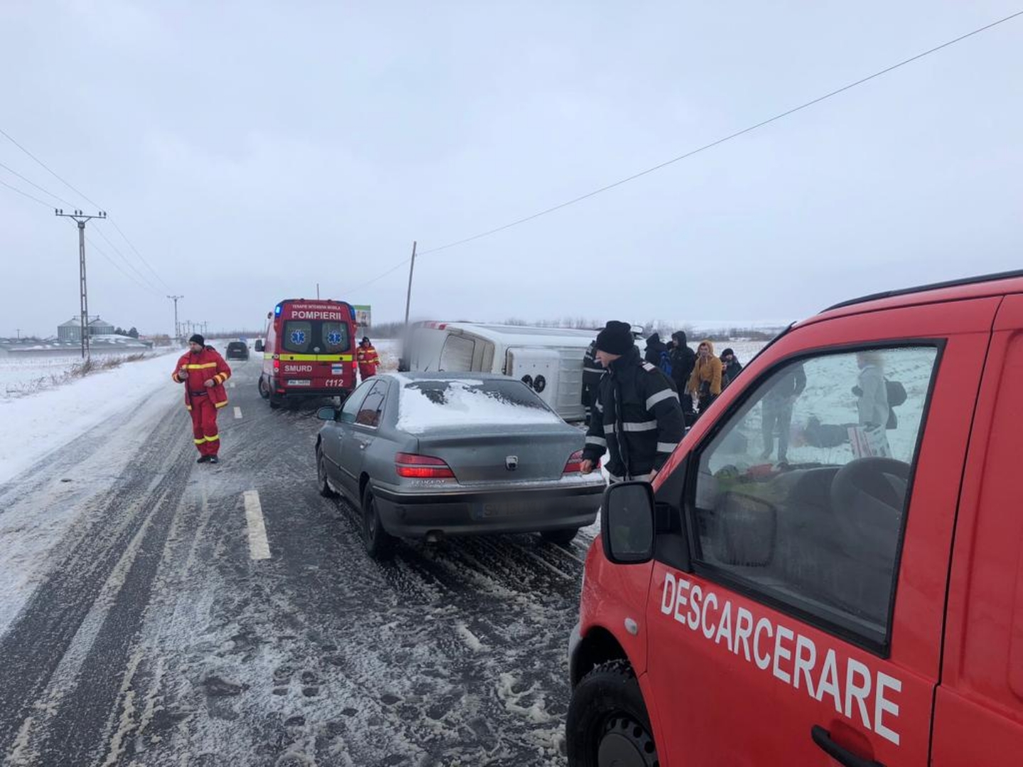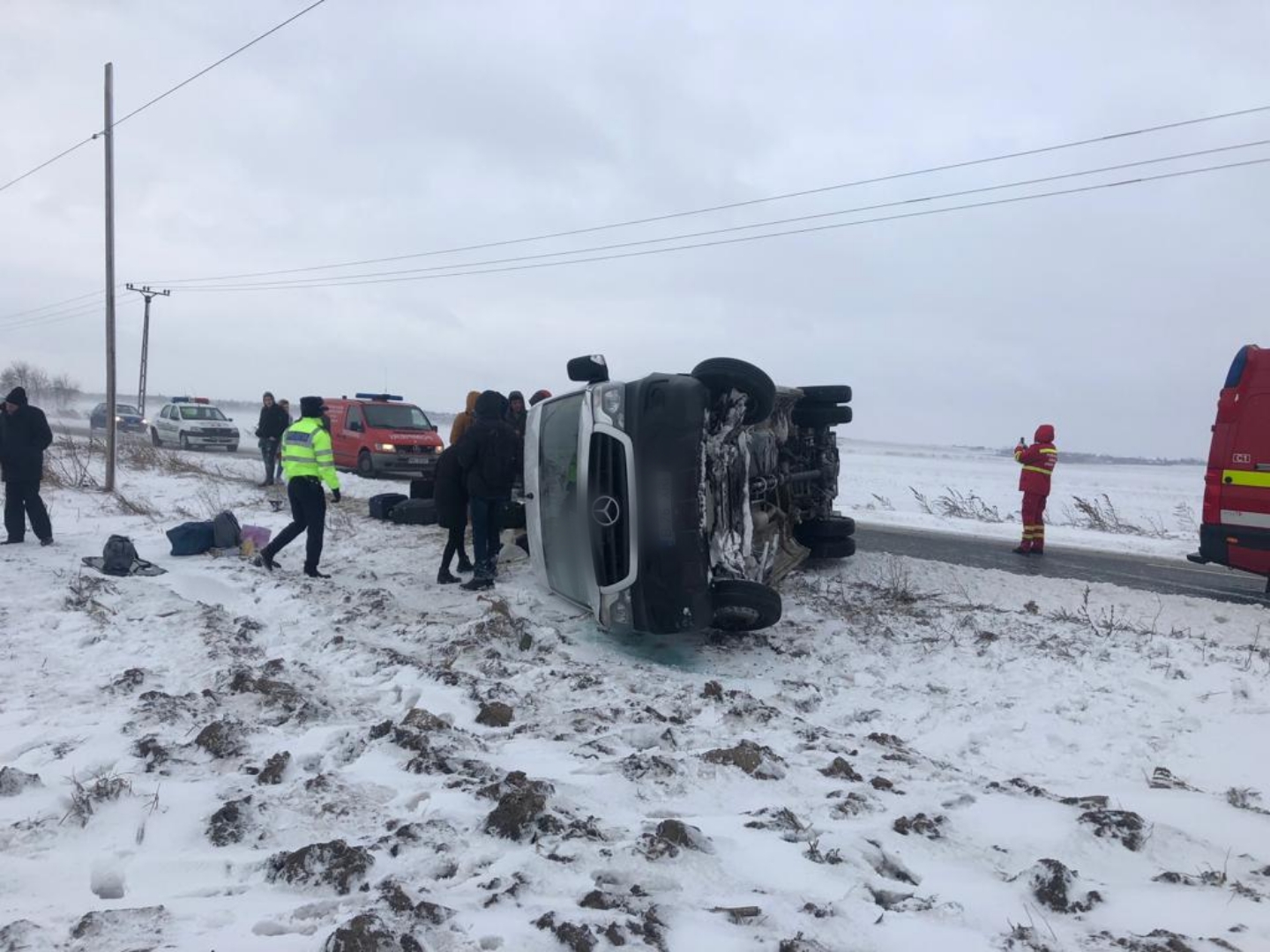 FOTO Accident în prima zi de Crăciun! Un microbuz cu 18 persoane s-a răsturnat pe drumul Botoșani- Suceava