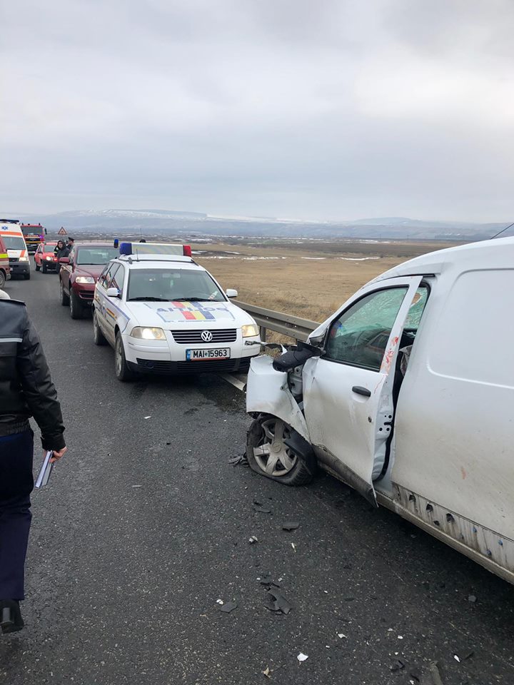 Un accident rutier s-a produs, vineri, pe DN 24, la km 85 (Sălcioara, județul Vaslui), în urma coliziunii frontale dintre un microbuz și un autoturism.