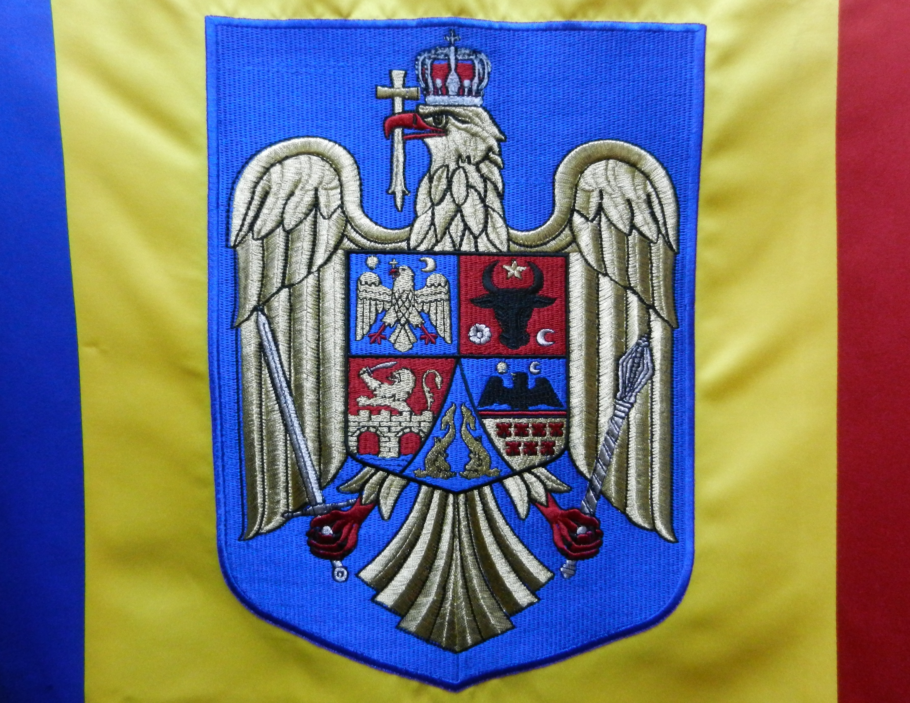,,Scutul mare, pe albastru, are o acvilă de aur cu capul spre dreapta încoronată, cu ciocul şi ghiarele roşii, cu aripile deschise, ţinând în cioc o cruce ortodoxă din aur, în gheara dreaptă o sabie, iar în gheara stângă un buzdugan”, se arată în articolul modificat din lege.