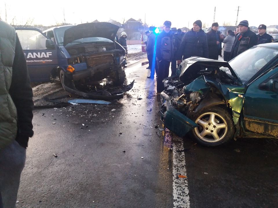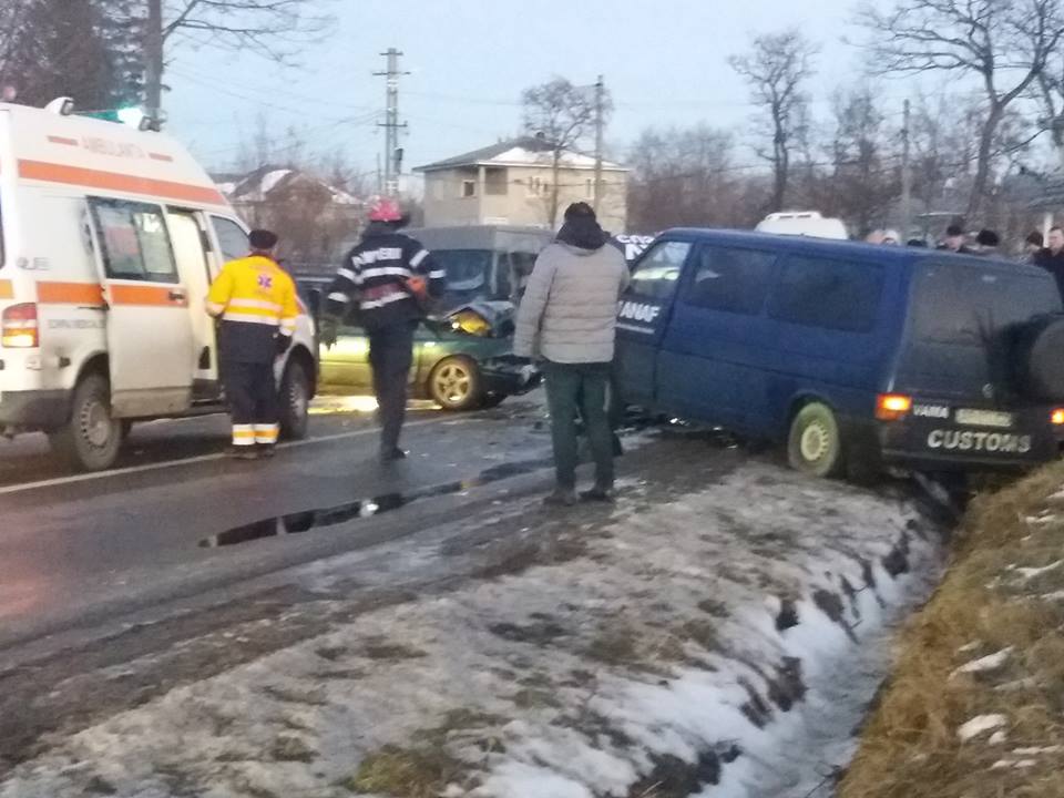 Microbuzul Volkswagen Transporter al Vămii Rădăuți Prut s-a ciocnit frontal cu un autoturism VW, al cărui conducător, un bărbat de 59 de ani, nu a adaptat viteza în curbă și la carosabilul acoperit cu polei, și a intrat pe contrasens.
