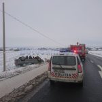 Un accident rutier a avut loc, luni după-amiază, pe E 58. Un autoturism Renault, în care se aflau patru persoane, s-a răsturnat pe cupolă, după o depășire.