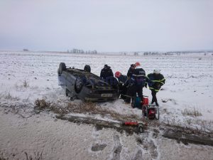 Un accident rutier a avut loc, luni după-amiază, pe E 58. Un autoturism Renault, în care se aflau patru persoane, s-a răsturnat pe cupolă, după o depășire.