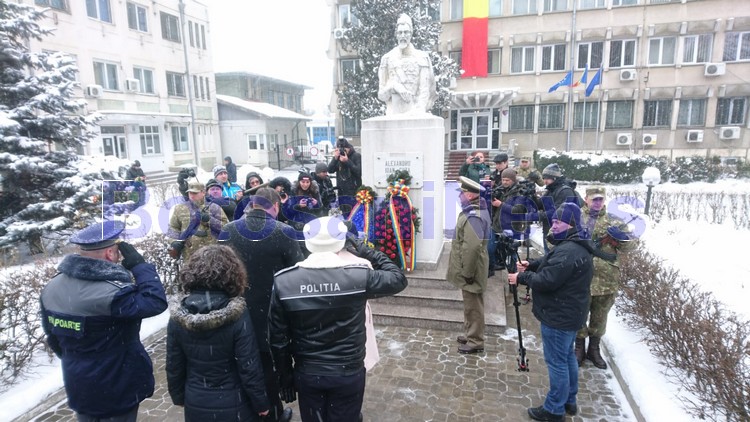 Sute de botoșăneni au participat, joi, la festivităţile dedicate Zilei Unirii, care au avut loc la Monumentul Domnitorului Alexandru Ioan Cuza, situat pe Bulevardul Mihai Eminescu, în faţa sediului Inspectoratului Judeţean de Poliţie.