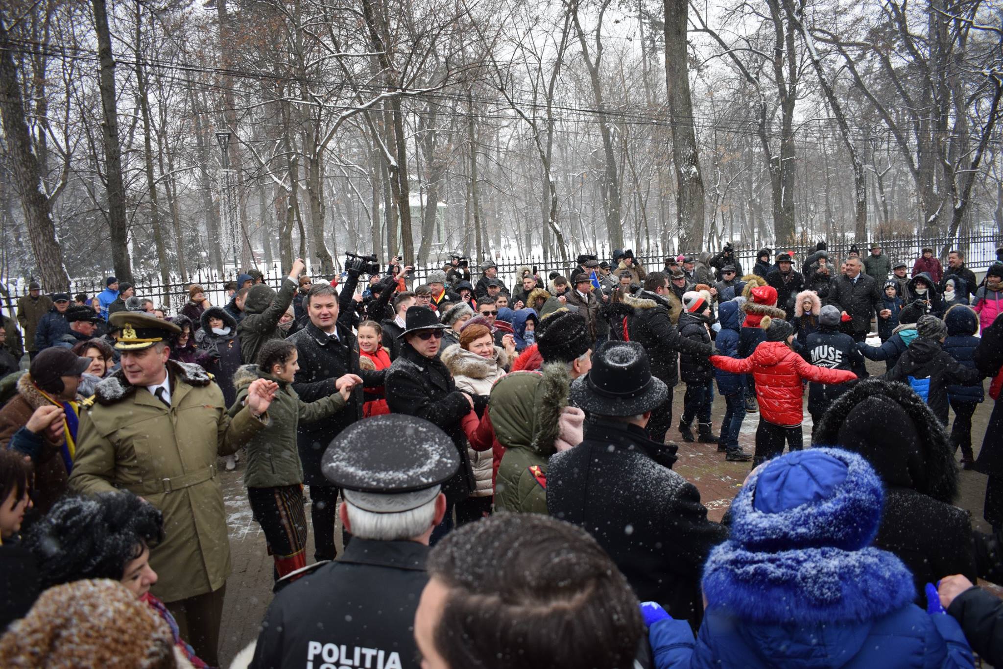 A urmat un ceremonial religios, după care au avut loc depuneri de coroane în cinstea şi memoria Unirii care a avut loc pe timpul lui Cuza. Participanții la eveniment s-au prins, apoi, într-o horă, nu înainte de defilarea Detaşamentului de onoare.