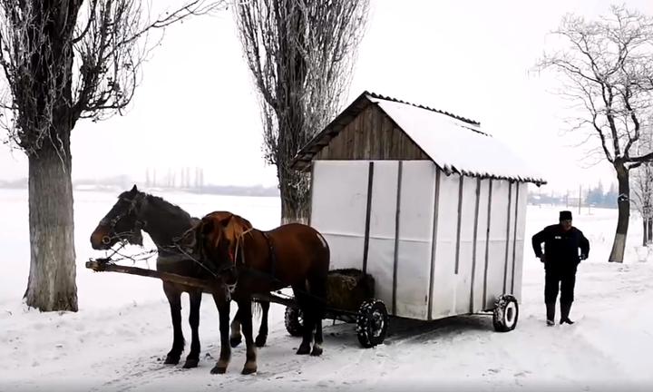 Un cioban din Botoșani și-a pus casa pe roți și e trasă de cai! Nea Ion își plimbă nevasta gravidă prin sat și a găsit modalitatea perfectă de a nu polua aerul.