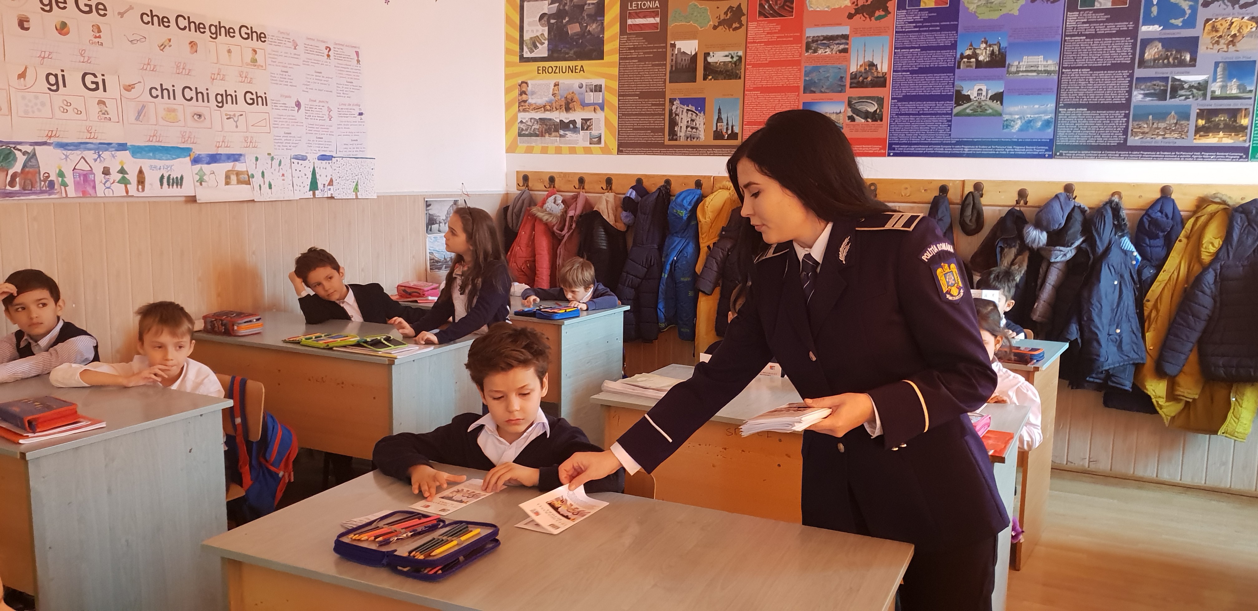La activitate au participat elevi ai claselor I, acestora fiindu-le oferite sfaturi preventive despre cum să se comporte pe stradă, în locurile de agrement sau dacă rămân singuri acasă.