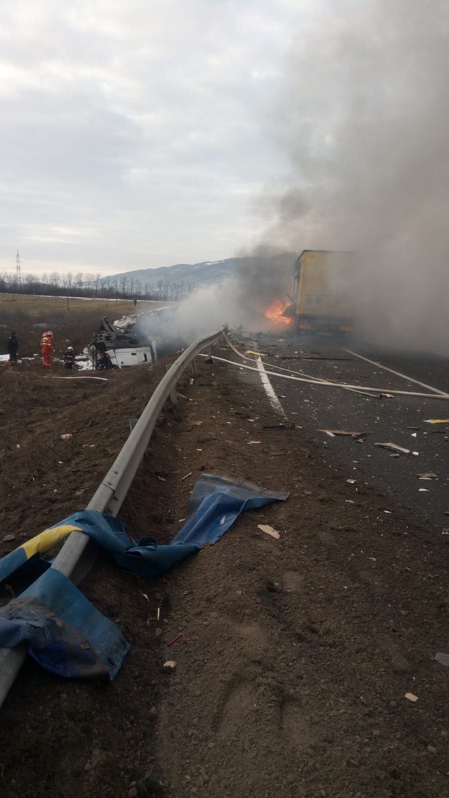 Doi șoferi de TIR au murit, vineri dimineață, în urma unui accident rutier pe DN 6, in apropiere de localitatea Slatina Timis, în care au fost implicate 3 autotrenuri (Tir-uri).In urma impactului, la unul dintre autotrenurile implicate în eveniment a izbucnit în incendiu, care s-a propagat și la un al doilea autotren. La cel de-al treilea autotren a fost avariata doar remorca, acesta nu a fost afectat de incendiu.*