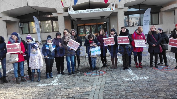 Peste 40 de părinți, însoțiți de copiii, au protestat, vineri, în fața Prefecturii și Primăriei Botoșani, nemulțumiți de decizia Guvernului de a trece către primării plata serviciilor sociale.