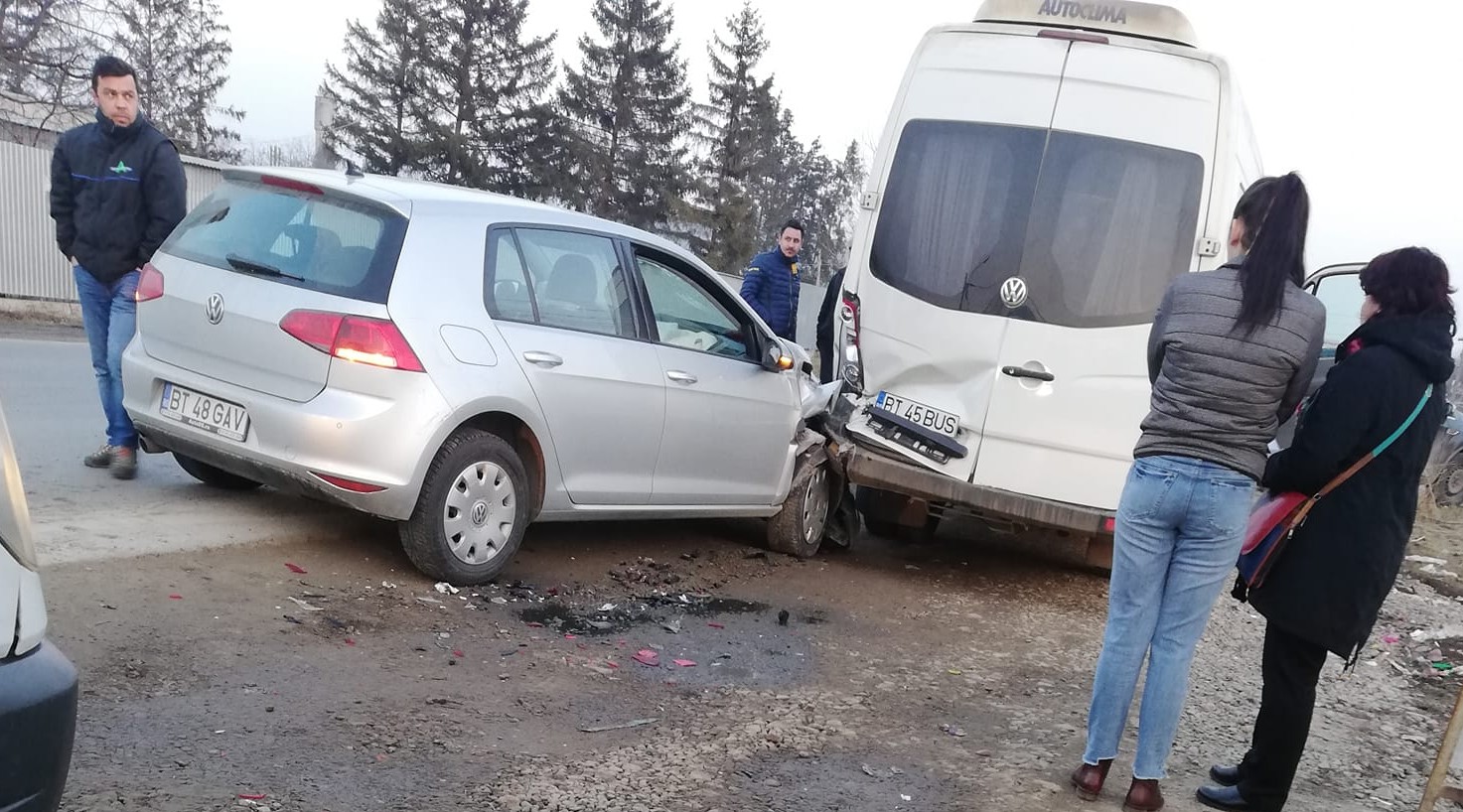 Un accident neobișnuit a avut loc, luni după-amiază, pe drumul care leagă Botoșaniul de Dorohoi. Din motive necunoscute, un tânăr aflat la volanul unui autoturism Volkswagen Golf, care circula dinspre Dorohoi spre Botoșani, a ieșit de pe carosabil și a lovit un maxi-taxi care staționa în afara părții carosabile.