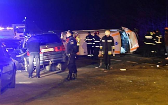 O ambulanţă care transporta un bolnav în comă la spitalul din Iaşi, implicată într-un  grav accident
