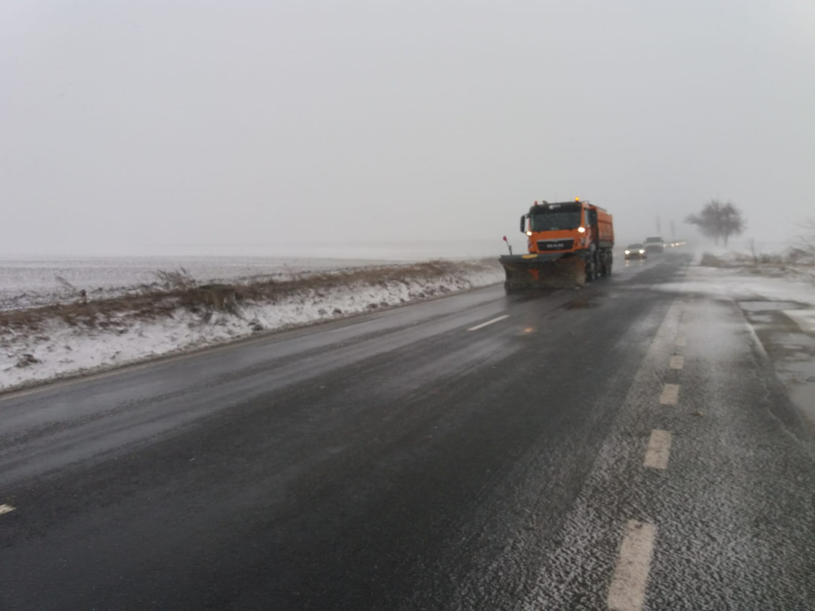 Utilajele DRDP Iași sunt mobilizate și intervin în toate zonele unde temperaturile au scăzut și există risc de formare a poleiului, dar și pe sectoarele în care a început să ningă și unde vântul puternic poate aduce cantități însemnate de zăpadă pe carosabil.