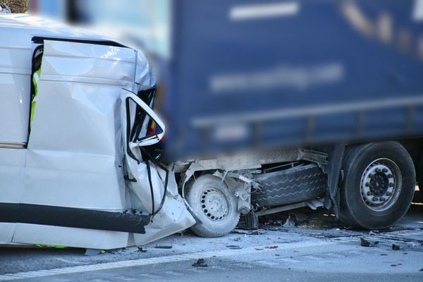 Accidentul s-a produs după ce un microbuz a intrat sub roțile din spate ale unui camion, după un impact puternic.