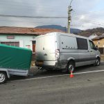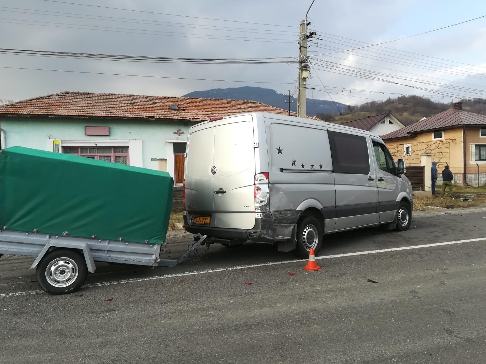 Un autoturism a fost lovit din spate de o autoutilitară, a cărei remorcă a lovit un al treilea vehicul.