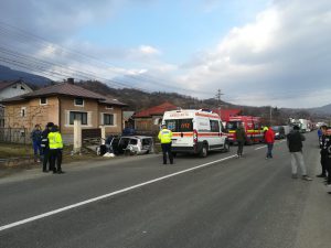 Prima maşină a fost aruncată într-un şanţ şi toate cele 4 persoane aflate la bord au ajuns la spital.