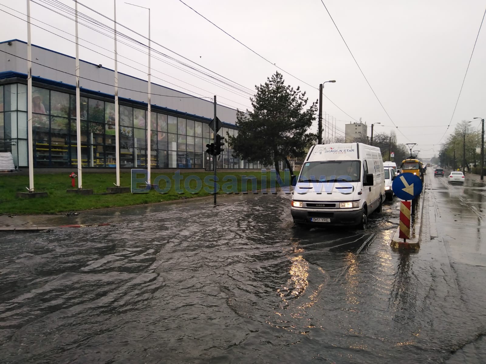 O stradă principală din municipiul Botoșani a fost inundată din cauza ploilor de joi dimineață. Este vorba despre strada Calea Națională, în zona Practiker, unde canalizarea a refulat, iar apa de ploaie și mizeria au ieșit pe carosabil.