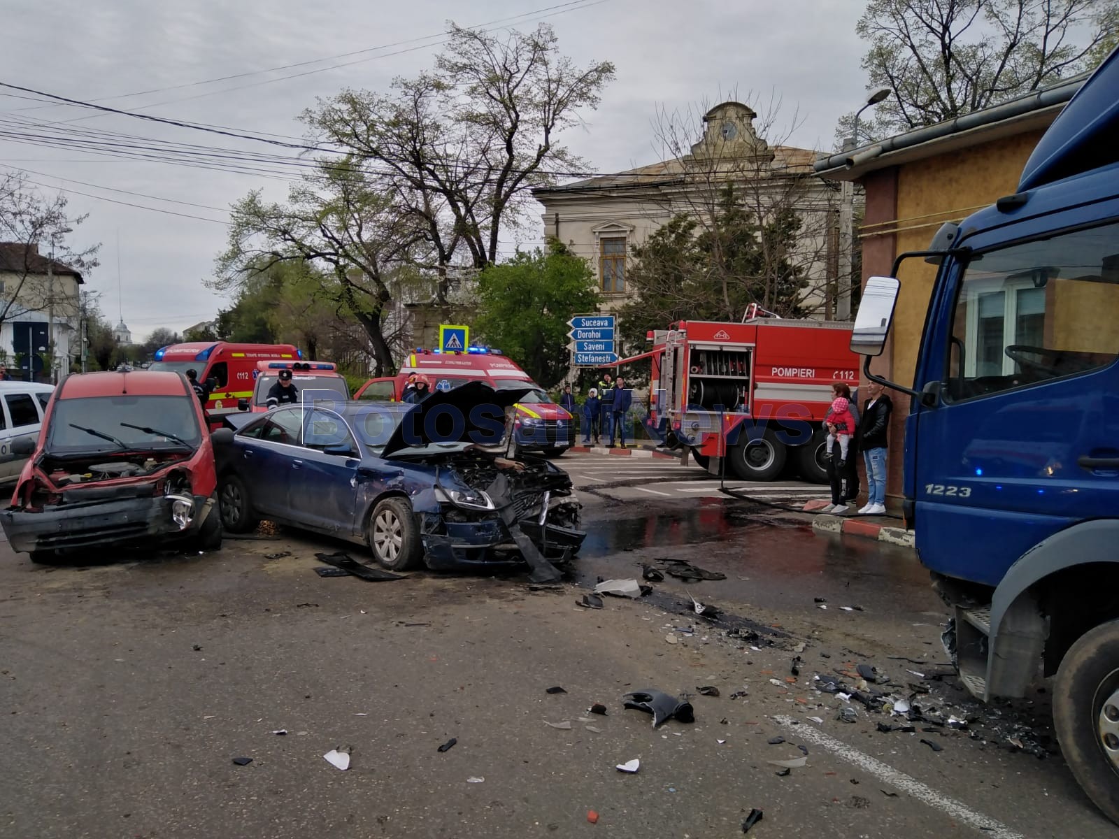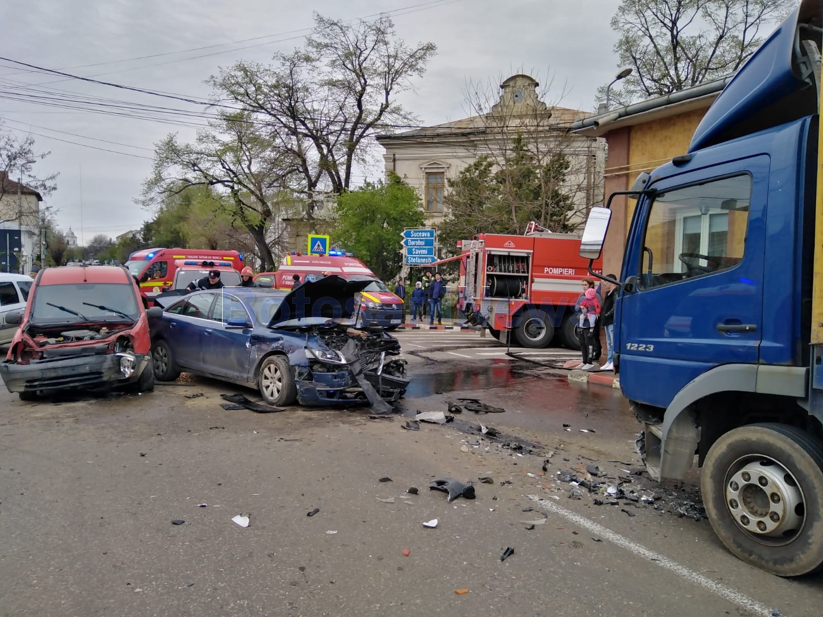 Un grav accident rutier a avut loc, marți, într-o intersecție din municipiul Botoșani. O familie cu un copil, dar și șoferul care a produs evenimentul rutier au fost răniți și transportați la spital. Cinci persoane au fost rănite în total în accident.