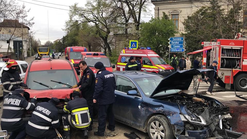 Reprezentanții ISU Botoșani susțin că șase persoane au fost scoase din cele trei autoturisme implicate in accidentul rutier si a fost stins un inceput de incendiu izbucnit la una dintre mașinile avariate datorita intervenției prompte a slt. Bogdan Cârligeanu, loctiitor al comandantului Detașamentului de Pompieri Botoșani.