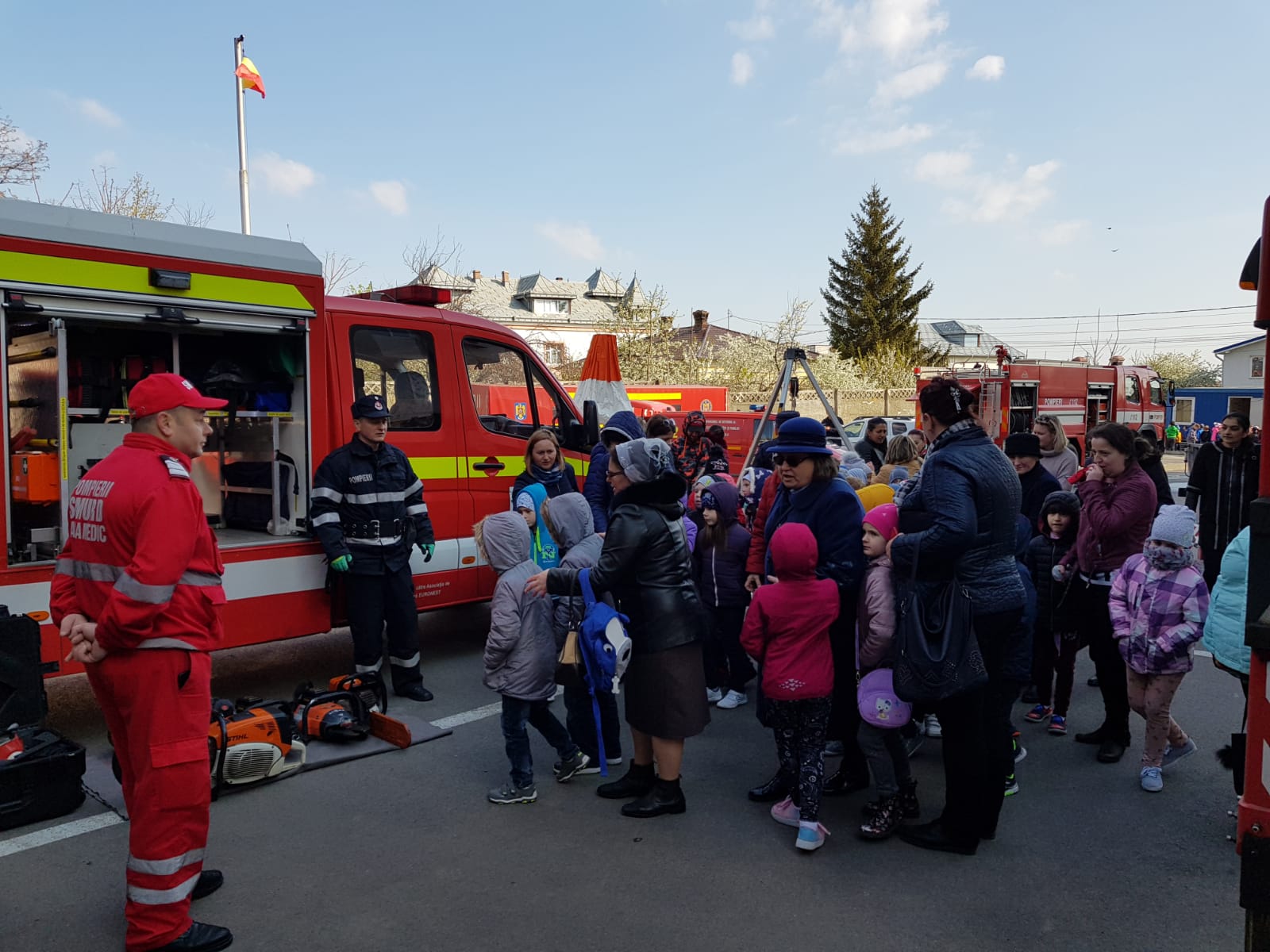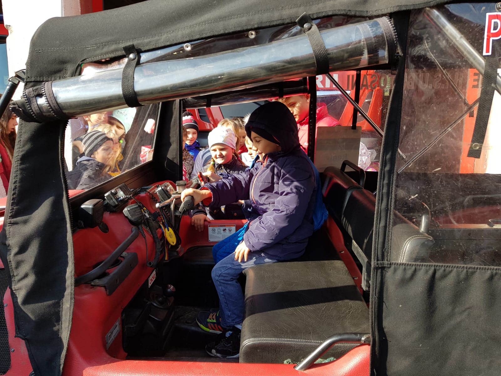 Vizibil emoţionaţi, copiii au purtat pe rând casca de protecţie, au folosit, unii pentru prima dată, pistolul cu apă şi au urcat în autospecialele de intervenţie.