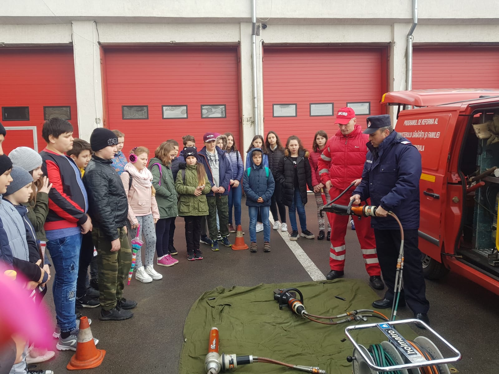 Totodată, ei au asistat la demonstraţii privind modul de funcţionare a echipamentului de descarcerare, precum şi la simularea unor intervenţii în caz de incendiu.