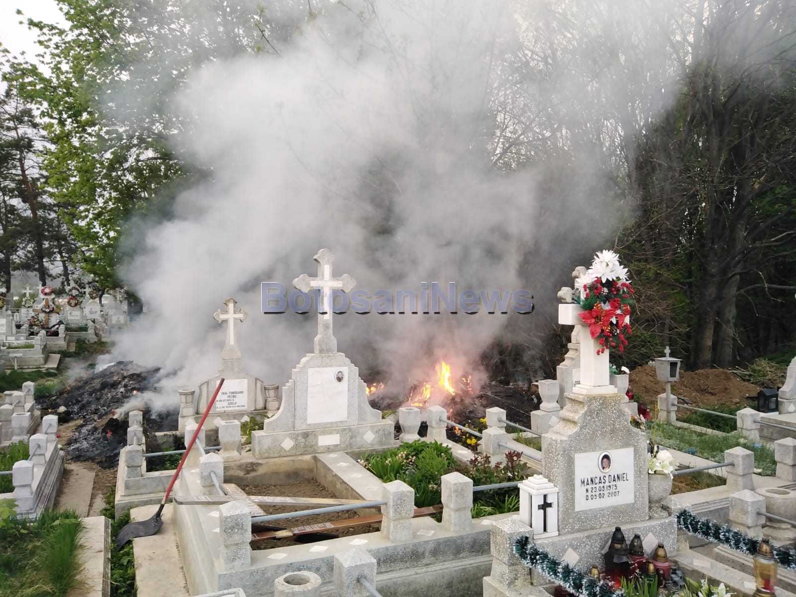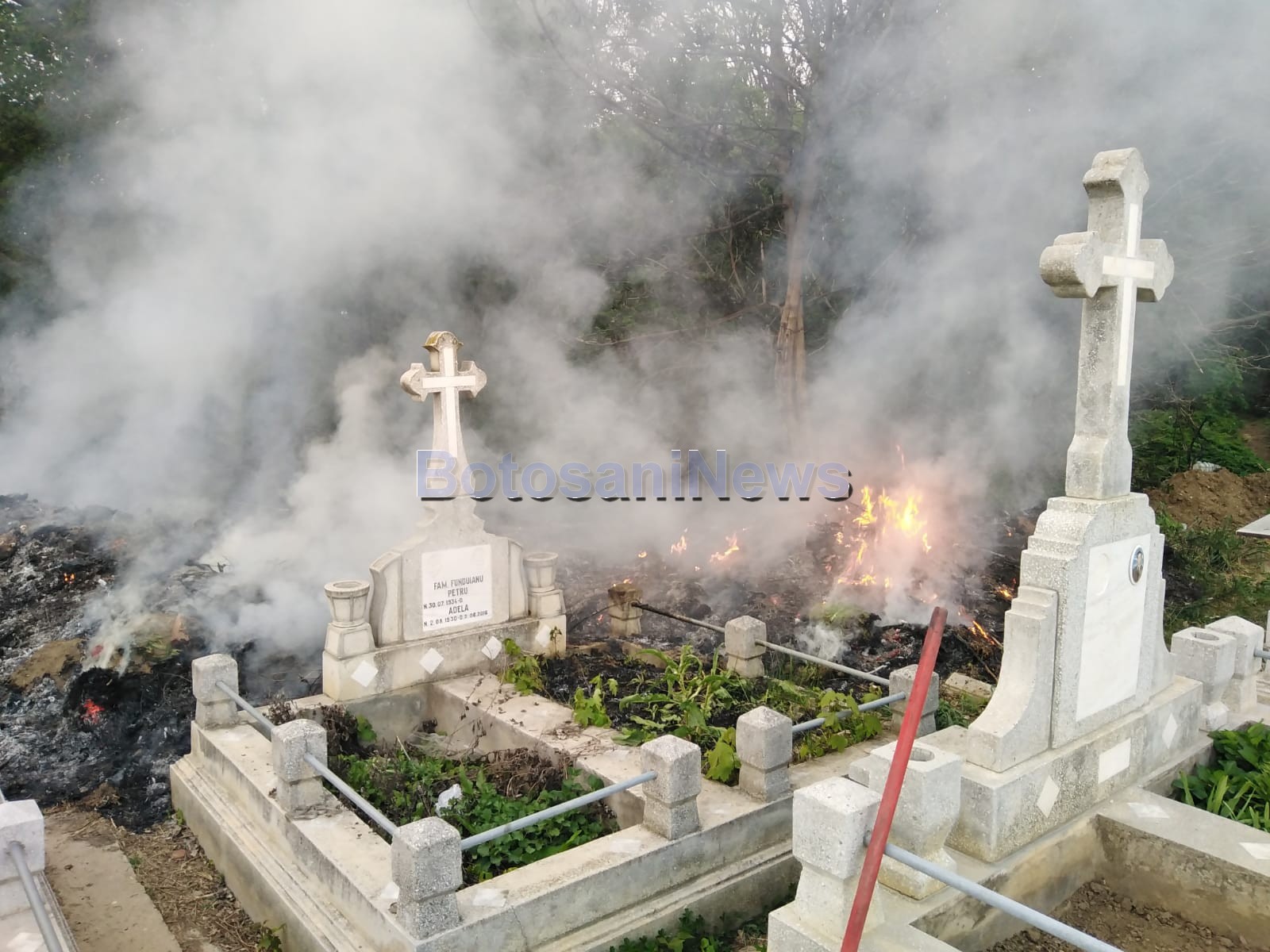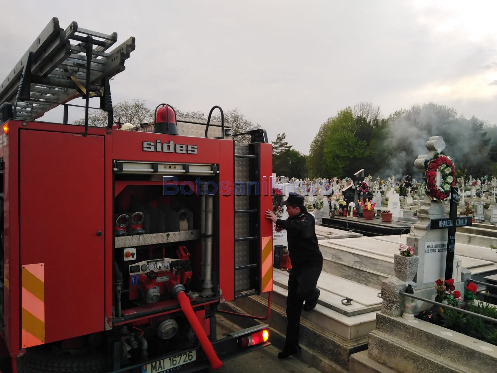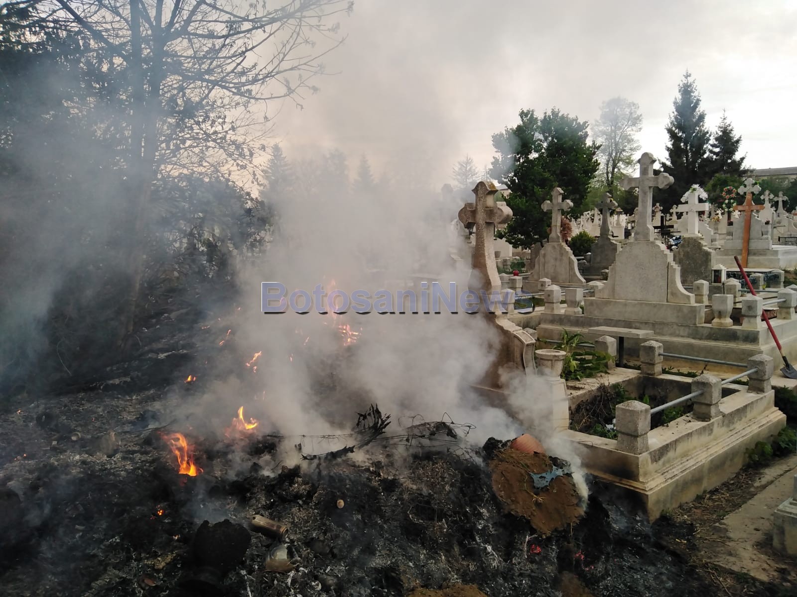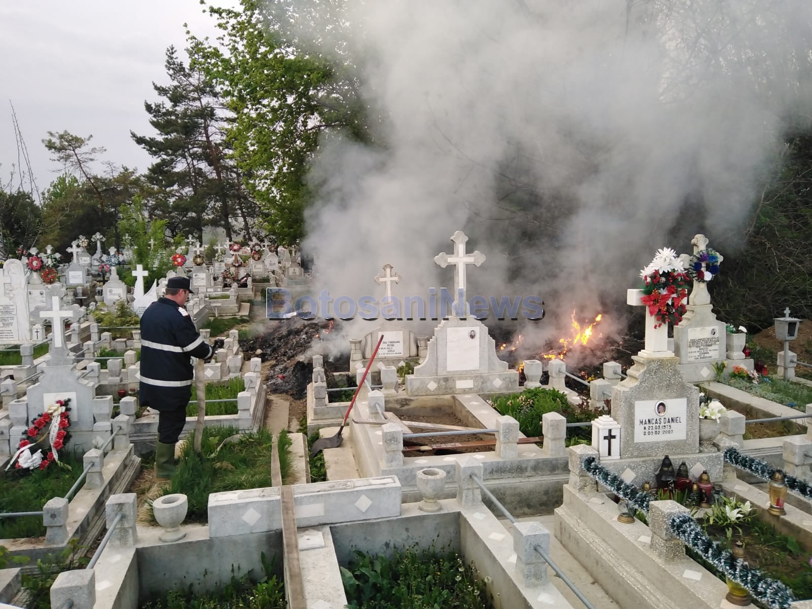 Un incendiu a izbucnit, în Vinerea Mare, la cimitirul Pacea din municipiul Botoșani. Câțiva oameni au cerut ajutorul pompierilor după ce flăcările au început să se extindă printre morminte.