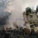 FOTO Incendiu la cimitirul Pacea! Flăcările s-au extins printre morminte