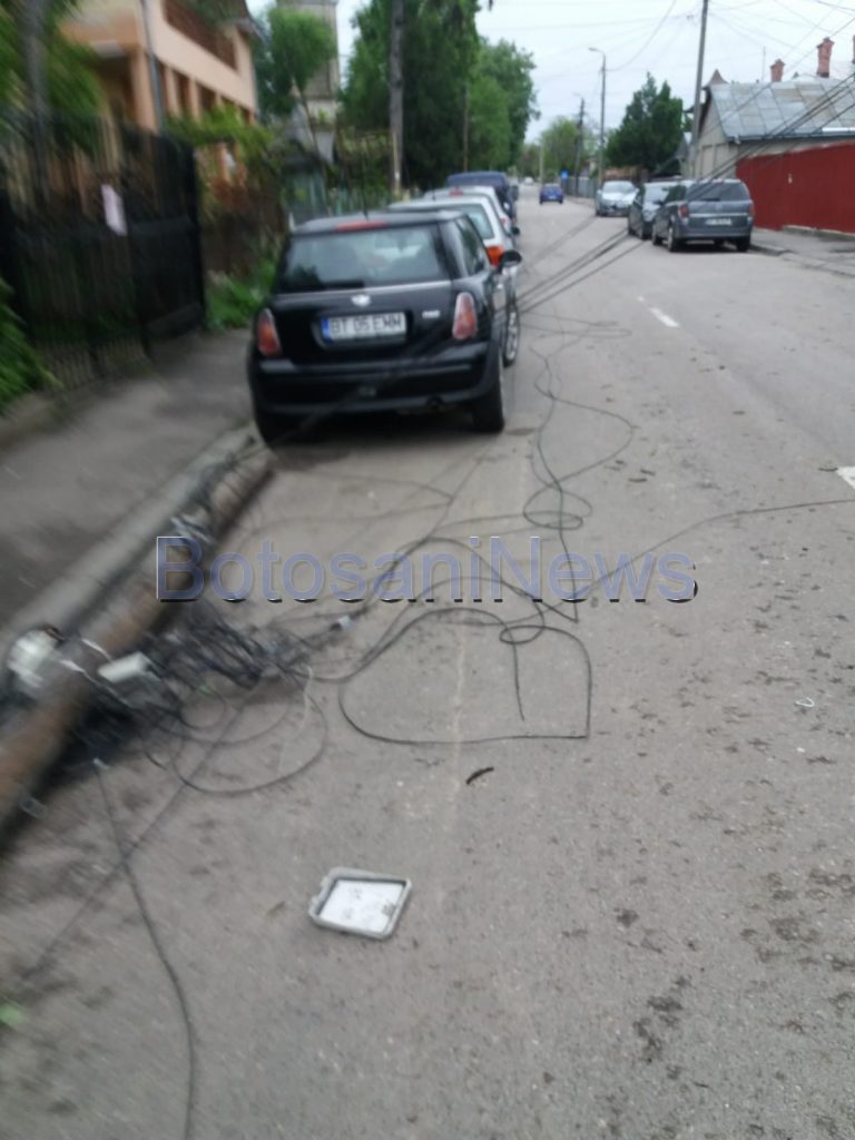 Circulația pe o stradă din Botoșani este îngreunată, marți seară, după ce un stâlp a fost doborât de vânt. Firele pe care acesta le susținea au ajuns pe carosabil. Incidentul s-a produs pe strada Armeană, în dreptul Grădiniței 25, din municipiul Botoșani.
