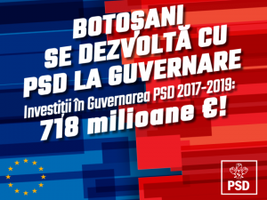 PSD Botoșani a dat dovadă de maturitate politică și unitate în ceea ce privește obiectivele de interes major pentru Botoșani și a atras investiții în toate localitățile județului aflate în diverse stadii de realizare.