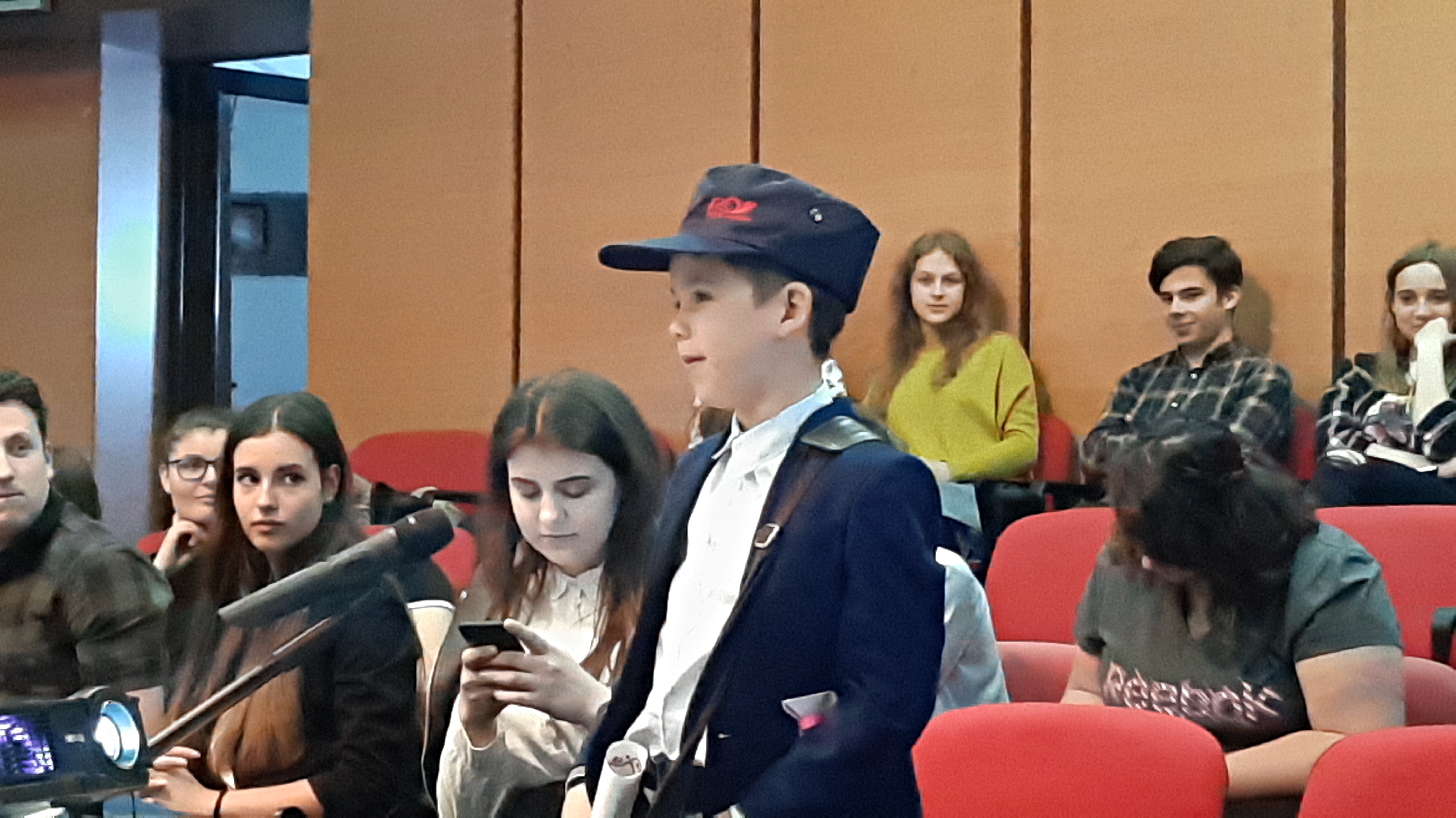 Sebastian Gheorghiță, elev la Şcoala Gimnazială nr. 1 Vlădeni şi coordonat de prof. Onica Podariu, a prezentat jocul-concurs „Christmas in Europe“, care a câştigat premiul I în proiectul eTwinning. Costumat în poştaş, Sebastian, secondat de un Moş Crăciun de pluş, a arătat cărţile poştale şi felicitările primite de la copii de vârstă apropiată din alte ţări europene şi a improvizat un concurs de cultură generală având ca temă obiceiuri de Crăciun, foarte apreciat de audienţă.