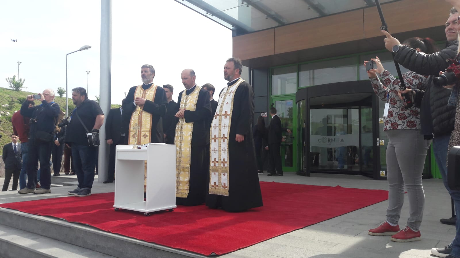 Înainte de tăierea panglicii, a fost oficiată o slujbă religioasă de către un sobor de preoți.