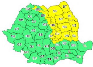 În Moldova și în zona Carpaților Orientali se vor semnala averse torențiale, frecvente descărcări electrice, vijelii și grindină. Cantitățile de apă vor depăși 25 l/mp și pe arii restrânse 40…50 l/mp.