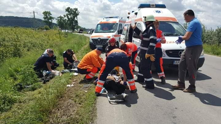 Doi biciclişti au fost spulberaţi de o maşină, la Arad, pe drumul dintre localităţile Vladimirescu și Horia. În urma impactului deosebit de violent, un biciclist a fost decapitat pe loc, iar celălalt se află în stare gravă.