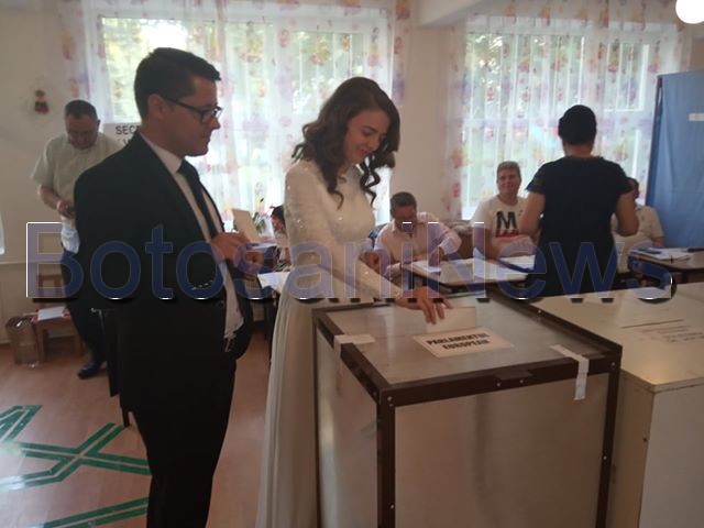Un mire și mireasa lui, din Botoșani, au mers la vot, duminică, chiar în ziua nunții lor. Cei doi tineri, îmbrăcați în costum de ginerică, respectiv rochie de mireasă, au mers la secția nr. 40 din municipiul Botoșani, unde și-au exercitat dreptul de vot.