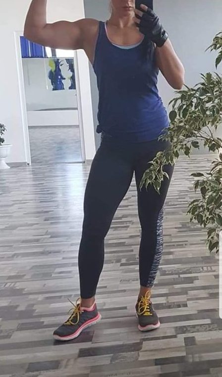 Lucrează la sală de cel puțin 3-4 ori pe săptămână, iar colegii îi spun „Xena”. Este atât de ambițioasă și devotată încât a reușit să îi motiveze și pe alții să se țină de antrenamentele la sală.